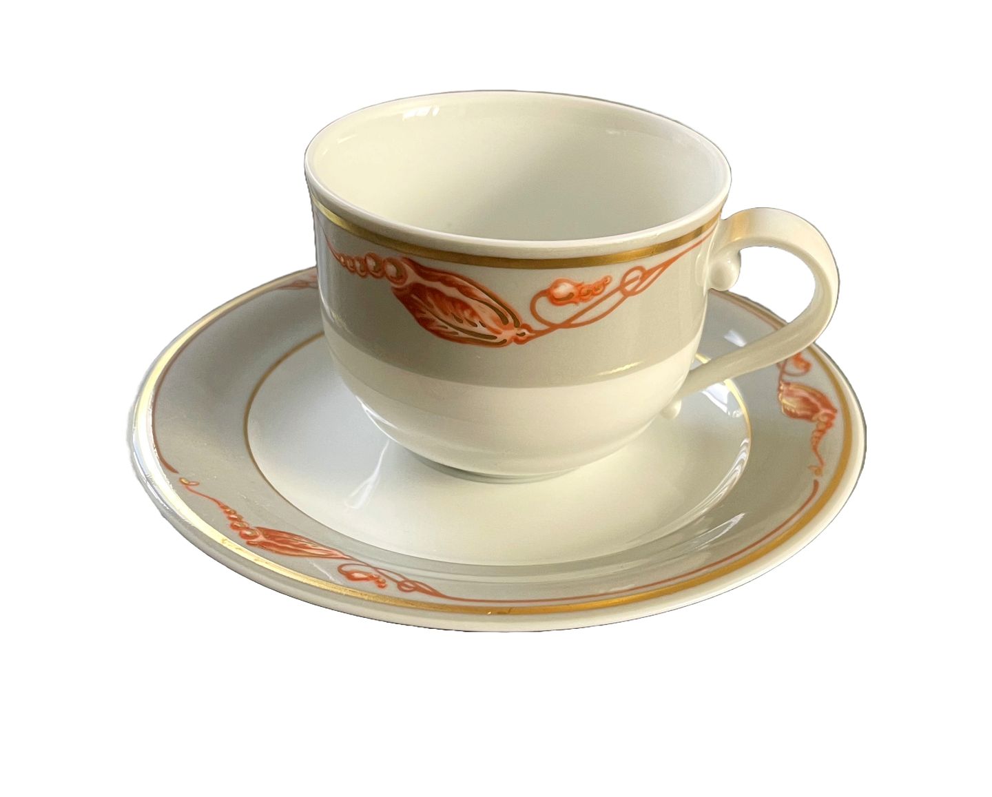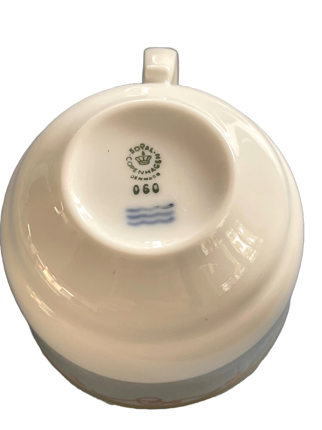 Kaffekop nr. 060. Højde 5,5 cm. Diameter 7 cm. Underkop nr. 061. Diameter 13,5 cm. I. sortering. Flot stand. Pris: 100 kr. stk. Lager: 4