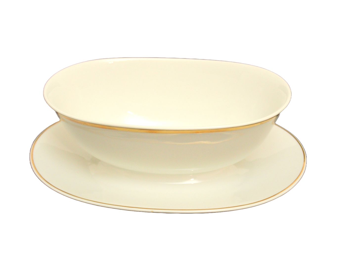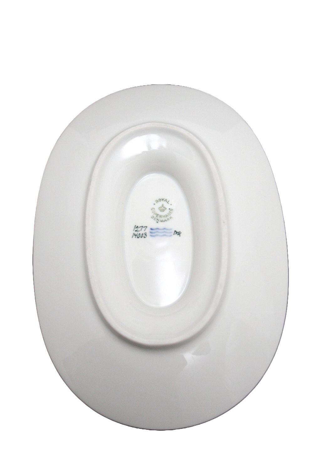 Royal Copenhagen, Lavinia, hvidt grundstel med guldkant, Oval sovseskål. Nr. 1277/14003. Højde 8 cm. Længde 22 cm. Bredde 15 cm. I. sortering. Pris: 375 kr.