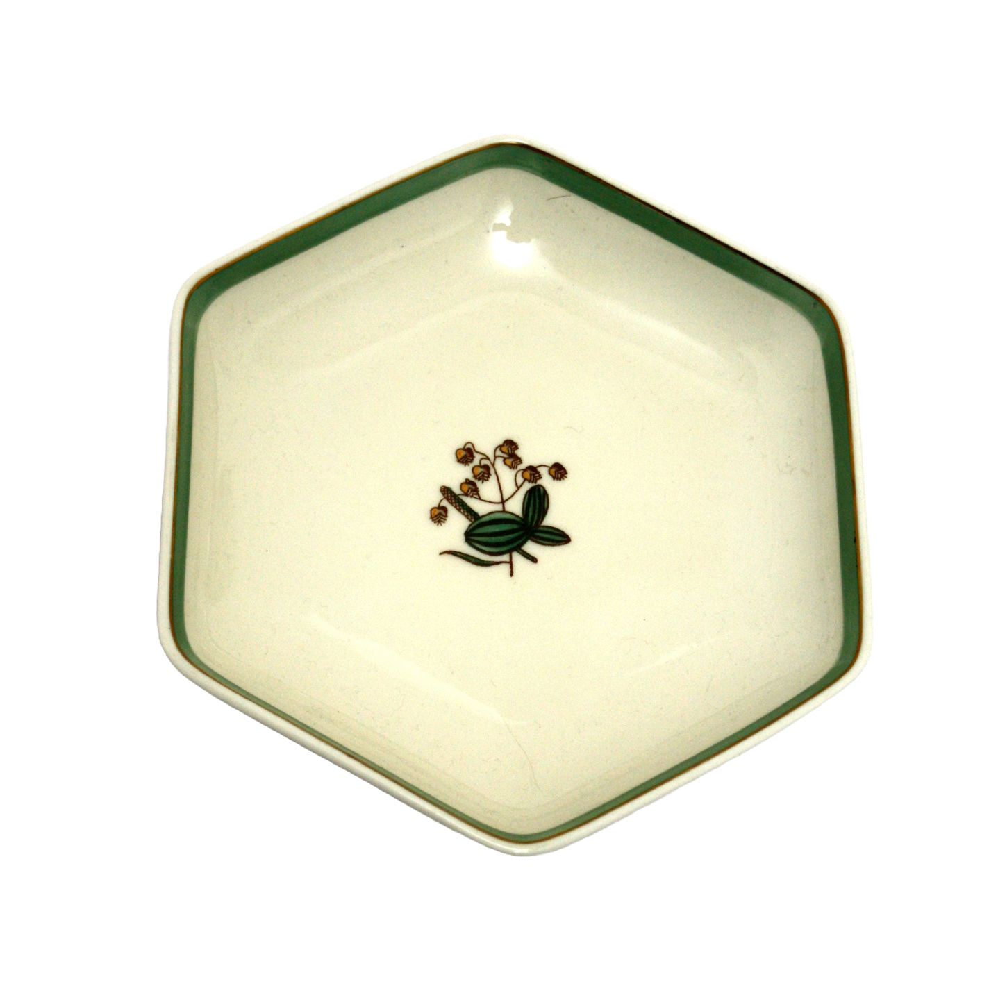 Royal Copenhagen, Hjertegræs, Sekskantet skål. Nr. 884/9784. Diameter 17-18,5 cm. Højde 3 cm. II. sortering. Pris: 175 kr. stk. Lager: 1