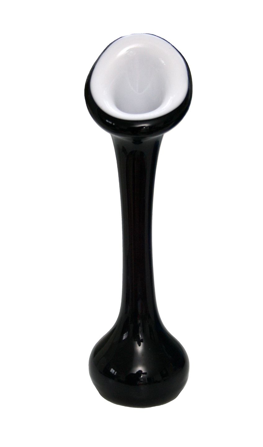 Knoglevase i sort udvendig med hvid opaline indvendig. Højde 20,5 cm. Ikke gennemsigtig. Flot stand. Pris: 300 kr. stk. Lager: 1