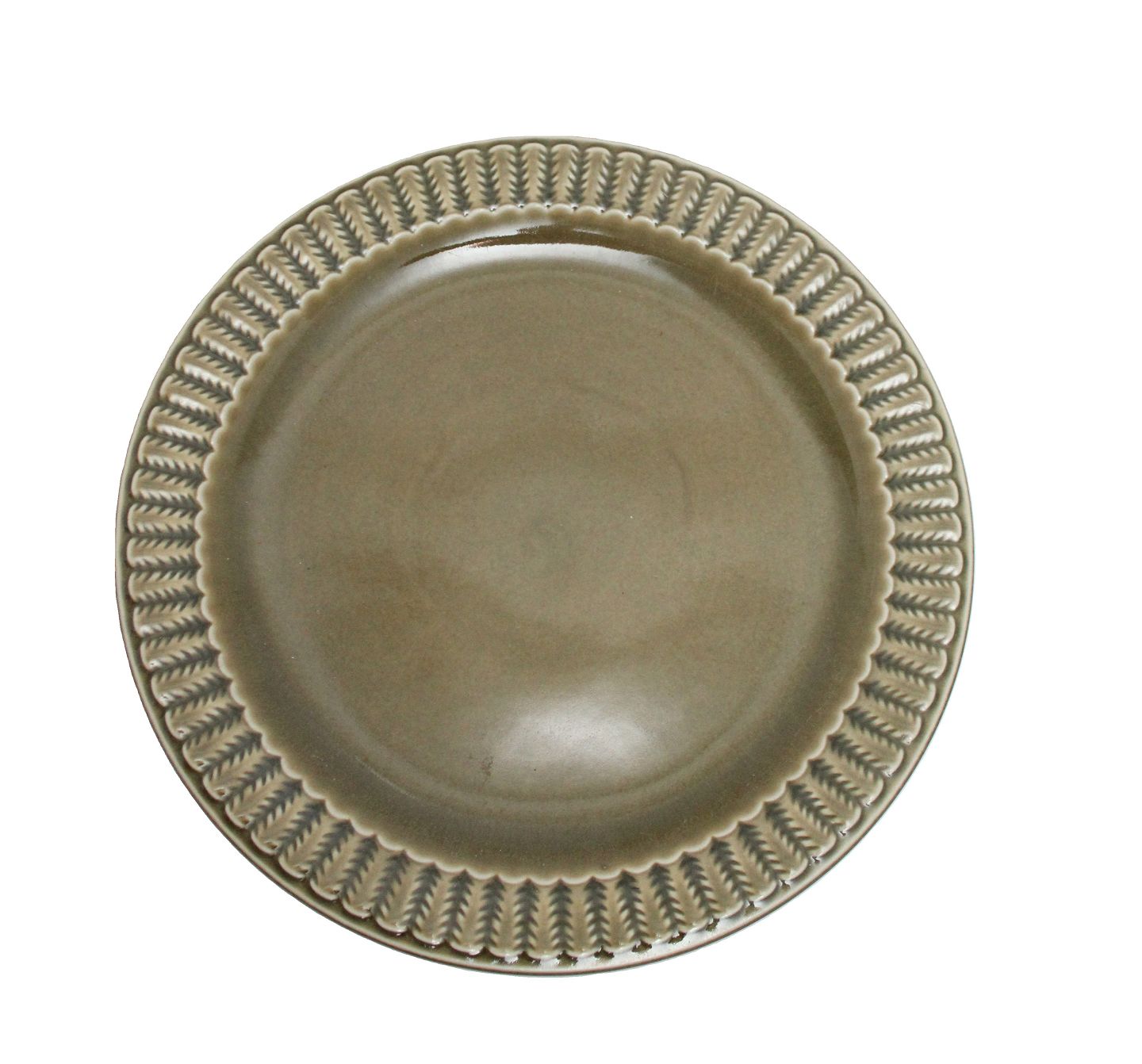 Desiree, Grøn glasseret Stor sidetallerken, som vi desværre ikke kender navnet på, men som er yderst sjælden. Diameter 19 cm. Lettere overfladekrakeleringer. Pris: 50 kr. stk. Lager: 6