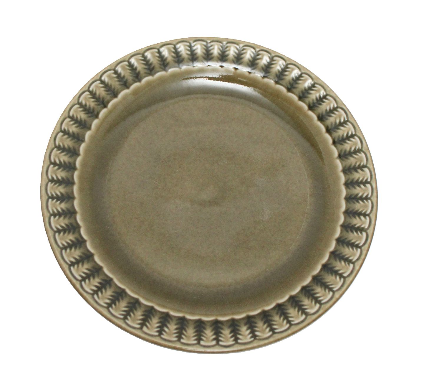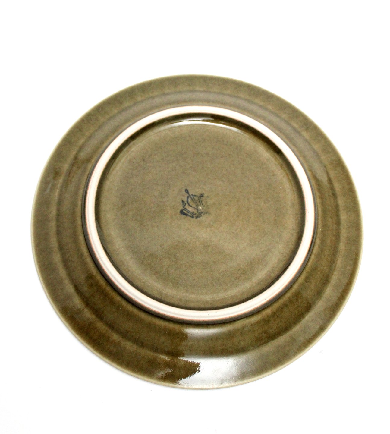Desiree, Grøn glasseret Rundt fad, som vi desværre ikke kender navnet på, men som er yderst sjælden. Diameter 27,5 cm. Lettere brugsslid og overfladekrakeleringer. Pris: 175 kr. stk. Lager: 1