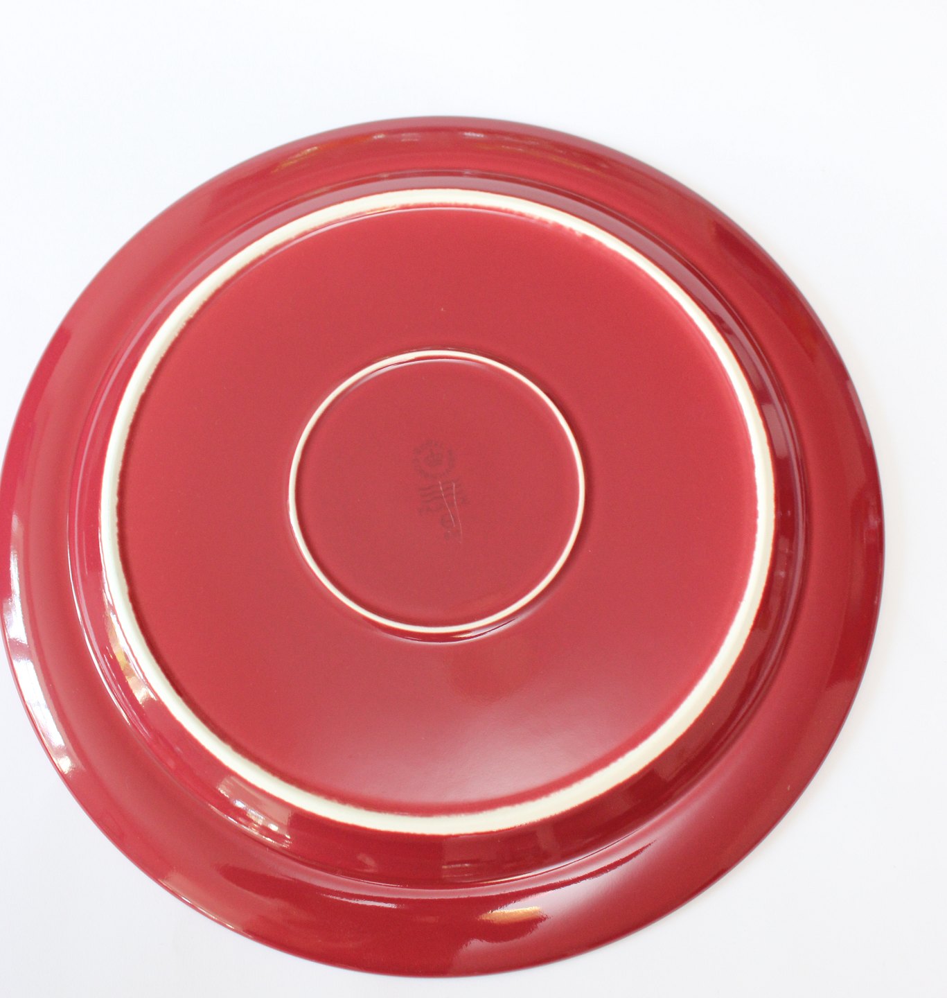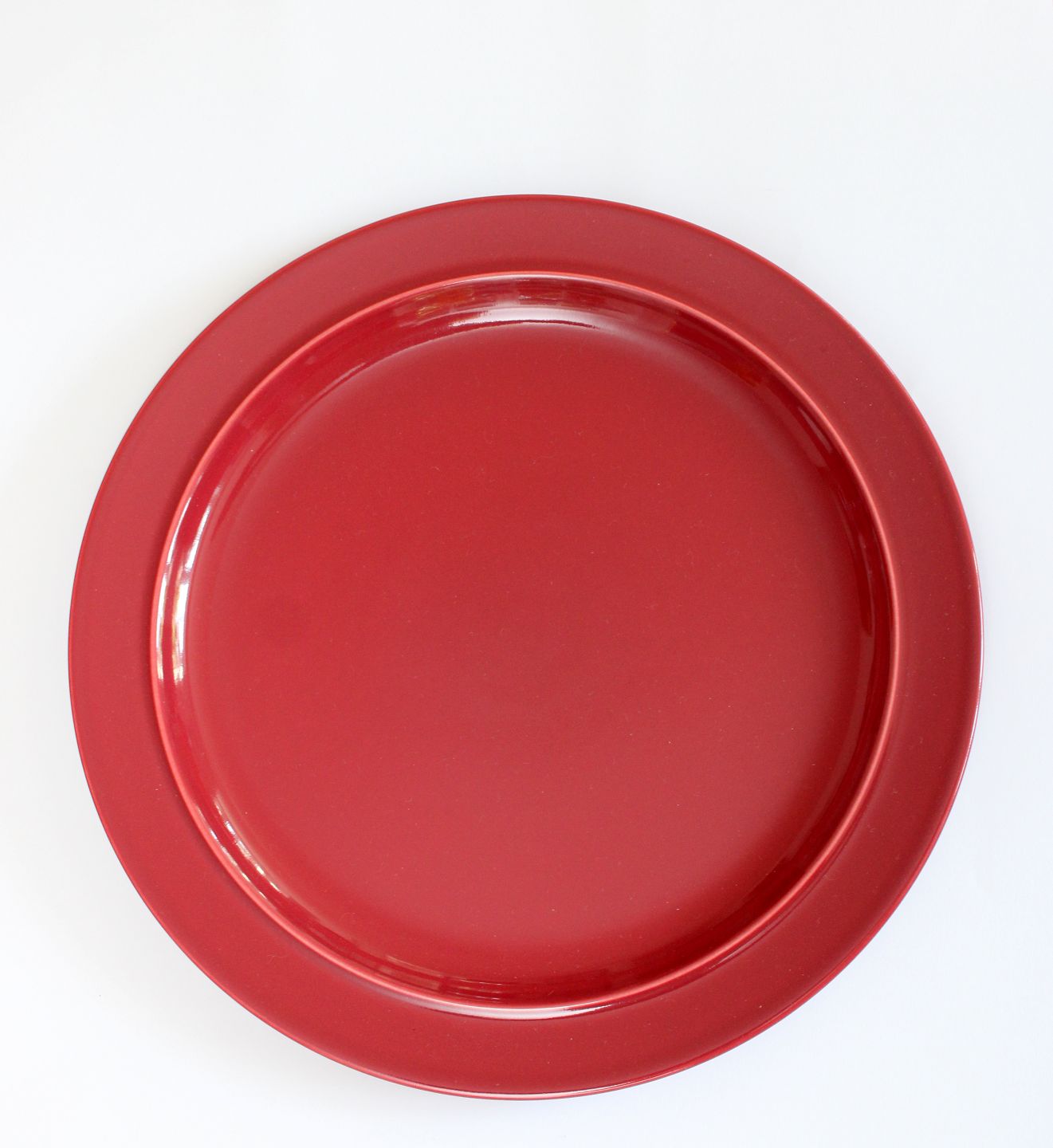 Royal Copenhagen, 4 All Seasons, Stor dækketallerken i Okseblodfarve/Bordeaux rød. Designet af Grethe Meyer. Nr. 631. Diameter 31,5 cm. III. sortering (medarbejdersortering). Flot ubrugt stand. Pris: 300 kr. stk. Lager: 12