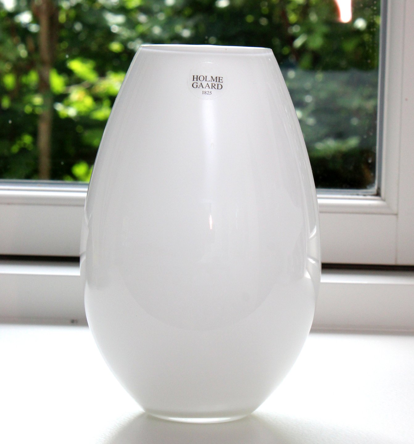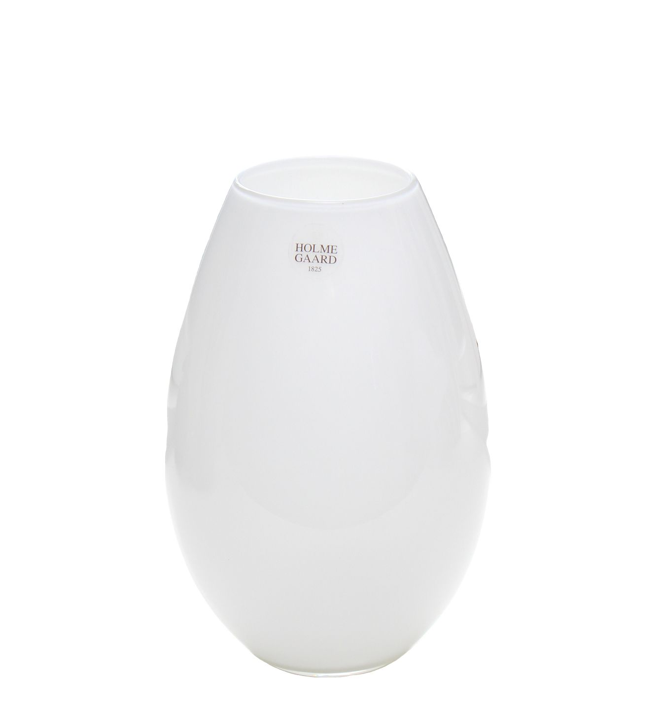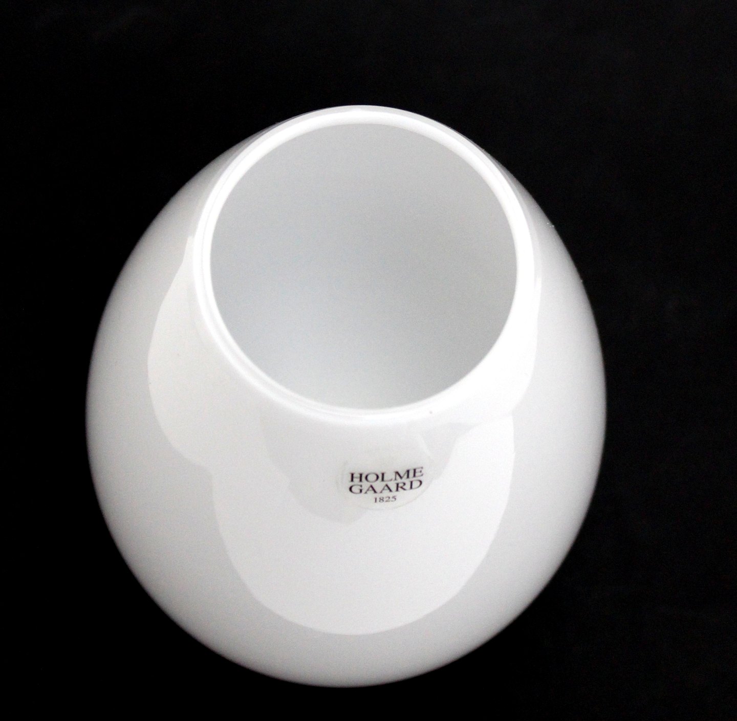 Holmegaard, Cocoon vase i hvid opaline glas. Designet af Peter Svarrer i 2005. Peter Svarrer starter på Holmegaard i 1997 og er kaldt for lysets mester, manden der bragte Holmegaard ind i det nye millennium efter Michael Bang og Per Lütken. Højde 17 cm. Øverste diameter 5,8 cm. Ingen signatur. Fin stand. Pris: 275 kr. stk. Lager: 1