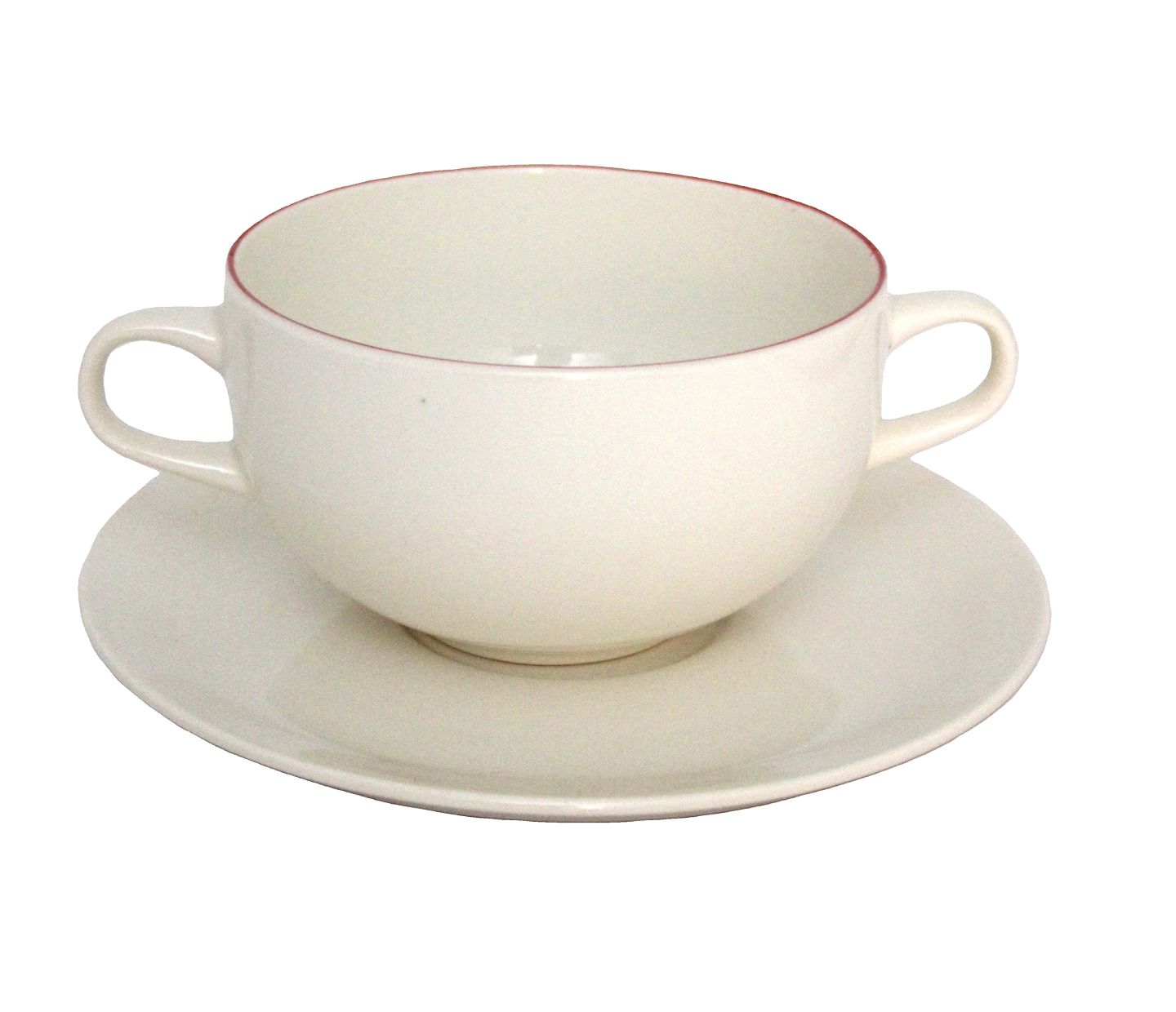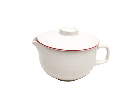 Royal Copenhagen, Rødtop. Boullionkop med underkop uden låg. Rød kant på kop cremehvid underkop. Designet af Grethe Meyer.