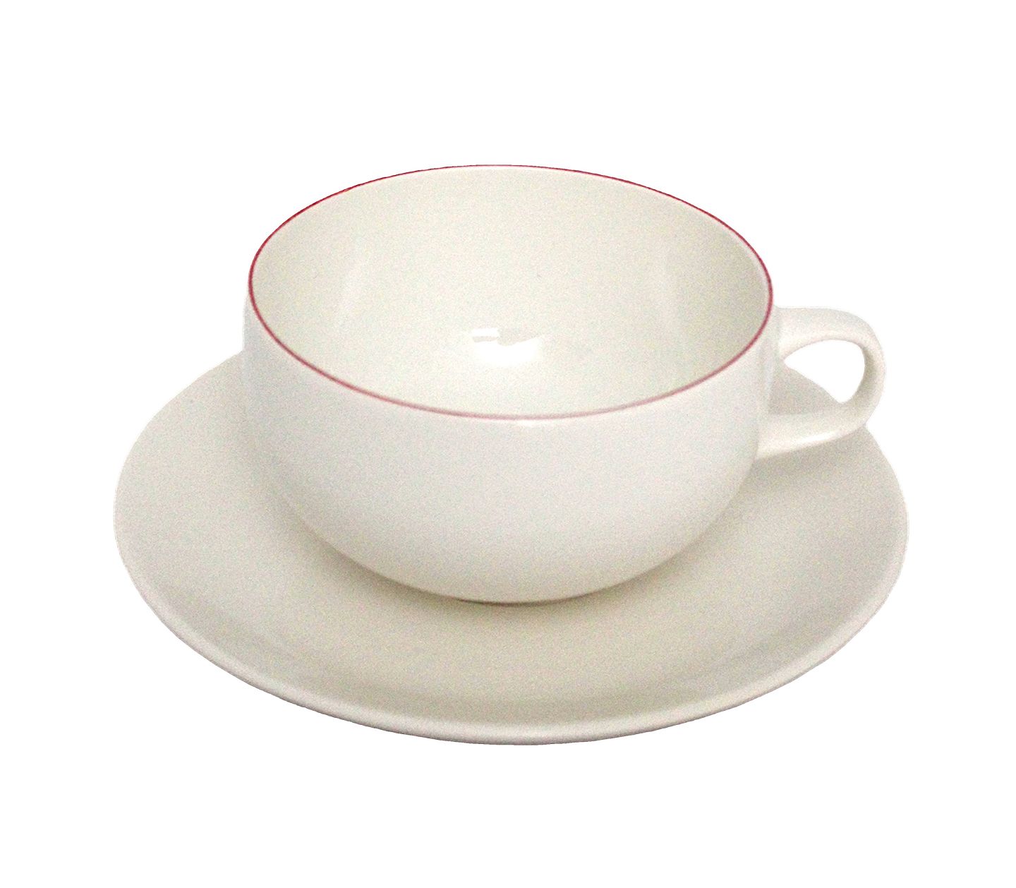Royal Copenhagen, Rødtop. Tekop med underkop. Rød kant på kop cremehvid underkop. Designet af Grethe Meyer. Tekop Nr. 081/3074. Højde 5,5 cm. Diameter 9,5 cm. Underkop. Nr. 3074. Diameter 15 cm. Fin stand. Pris: 200 kr. stk. Lager: 6