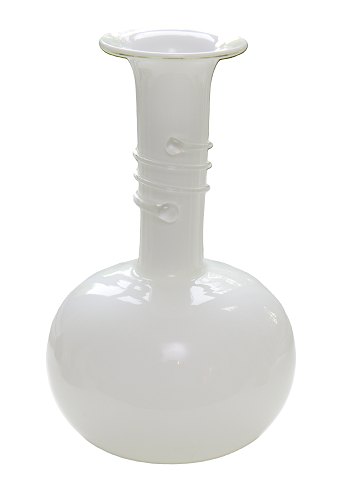Made in Sweden, Limegrøn slank vase med hvidt glas indvendig. Højde 32,5 cm. Diameter bund 9 cm. Top diameter 4,5 cm. Vasen har produktionsfejl se foto. Pris: 275 kr.