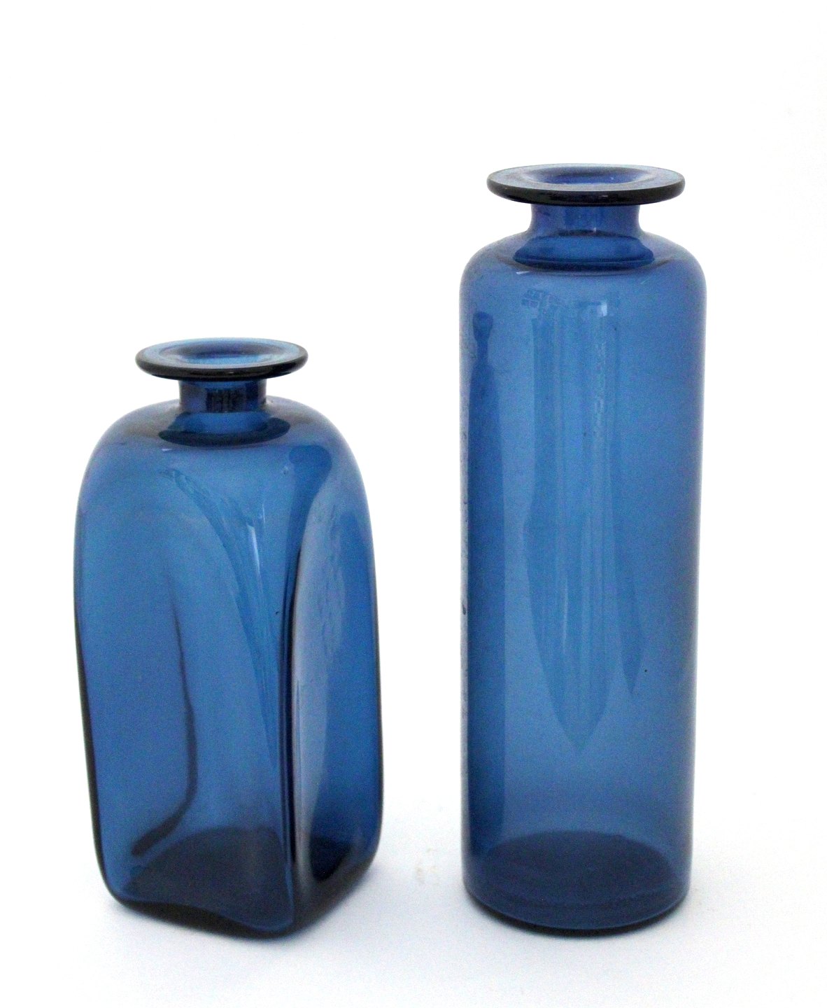Kastrup, Blå Capri vaser. Designet af Jacob E Bang i 1961. Produceret på Fyens Glasværk i produktion 1961-1973. Ingen signatur.