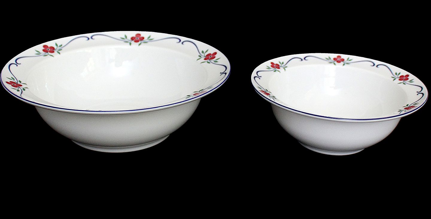 Mellem serveringsskål. Højde 7 cm. Diameter 20 cm. Pris: 275 kr. stk. Lager: 1