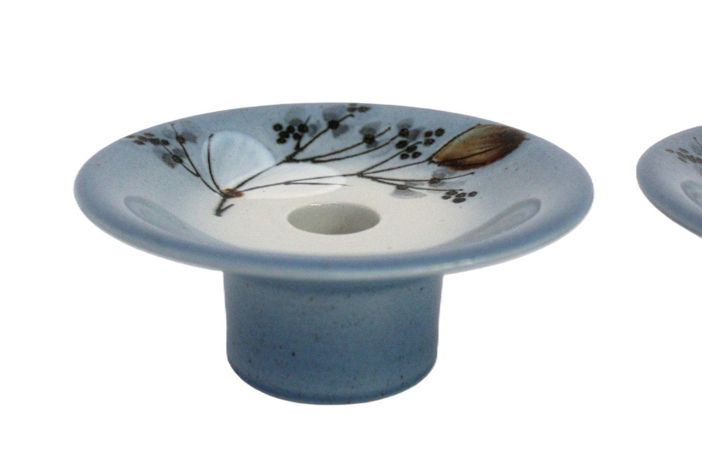 Royal Copenhagen Celeste lyseblå porcelæn med blomstermotiv. Designet af Ellen Malmer. Lysestage. Nr. 967/3901. Diameter 12,5 cm. Højde 5 cm. I. sortering. Pris: 250 kr. stk. Lager: 2