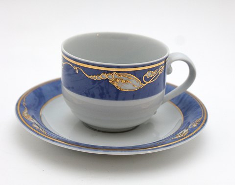 Royal Copenhagen, Blå Magnolia. Blå marmoreret bort dekoreret med gylden blomsterknop. Designet af Flemming Eskildsen. Stor kagetallerken. Diameter 17 cm. Nr. 617. I. sortering. Pris: 50 kr. stk. Lager: 6