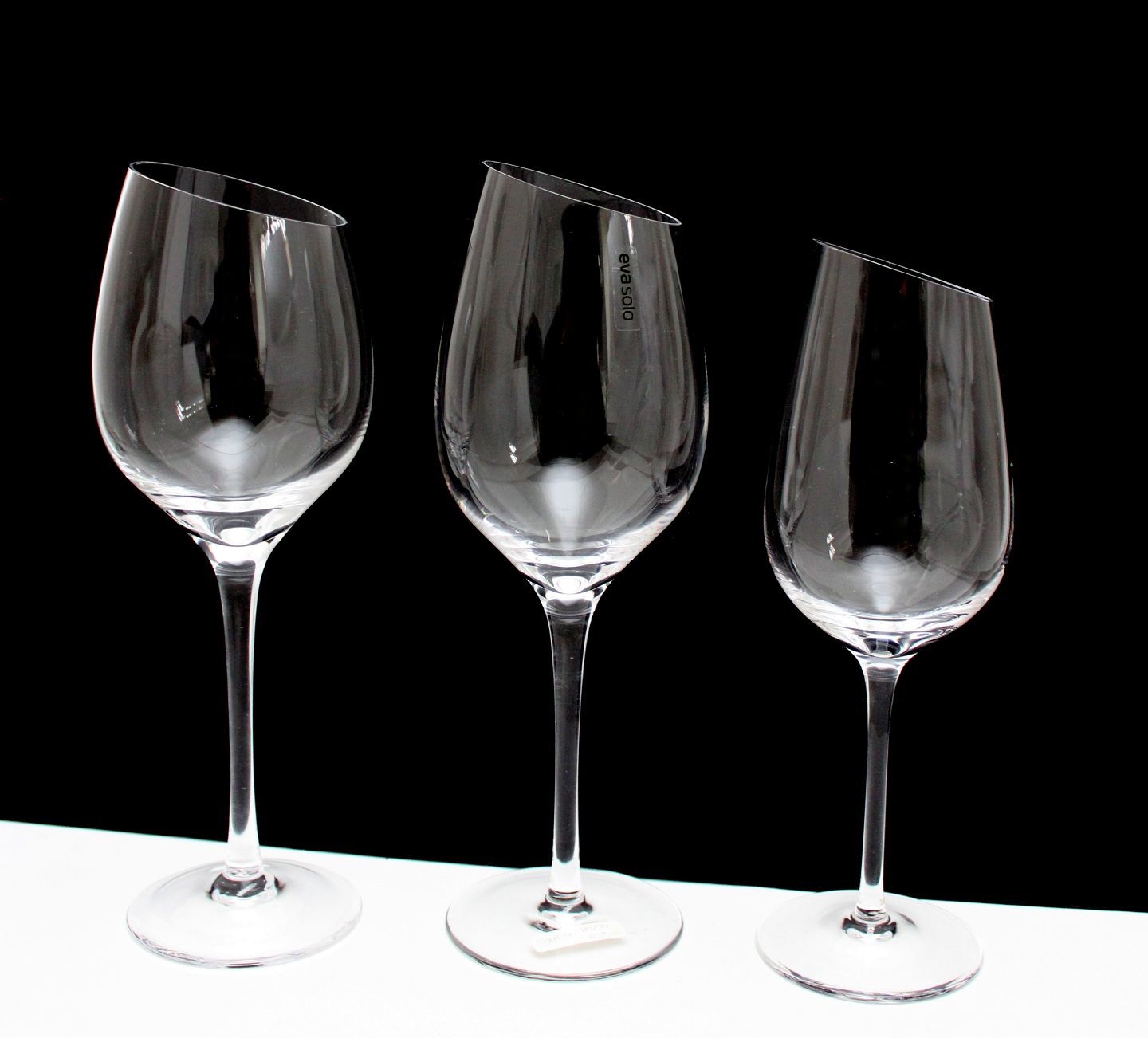 Eva Solo, Syrah. 3 størrelser. Tv, Rødvin. Højde 23,5 cm. Pris: 100 kr. stk. Lager: 6 Midten. Rødvin. Højde 23,5 cm. Pris: 100 kr. stk. Lager: 3 Th. Hvidvin. Højde 22 cm. Pris: 80 kr. stk. Lager: 6