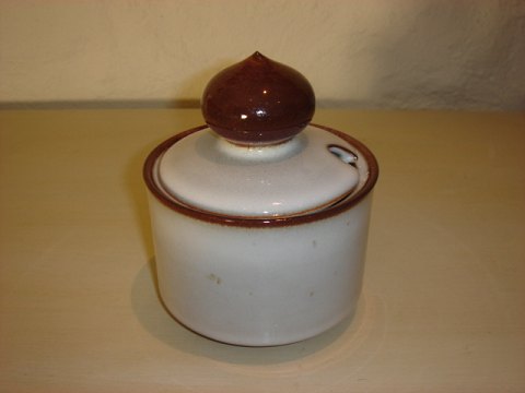 Søholm, Sonja marmeladekrukke med løglåg og hul til ske. h 14 cm Ø 10 cm. Pris: 150 kr.