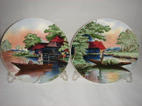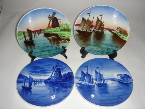 2496 D Bemalet platte. Motiv sejlbåd og mølle. Fin stand. Diameter: 18,5 cm. 75 kr. stk.