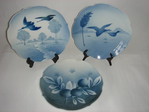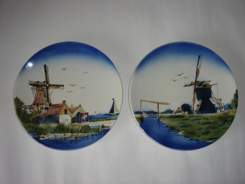 Malede fajance platter fra Saxony i Tyskland på den ene står der 18 i bunden. Fin stand. Motiv: Mølle ved vand. Diameter 24 cm.