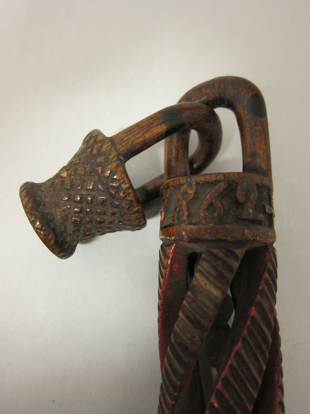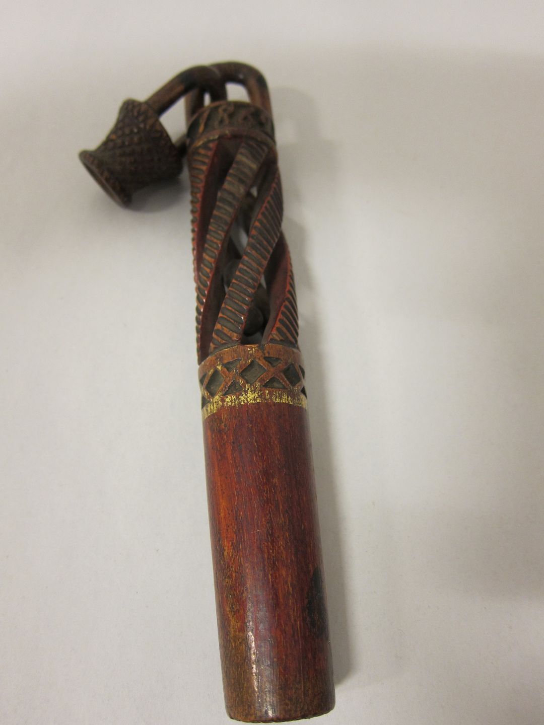 Rigt udskåret og med både perler og indarbejdet hængende kurv