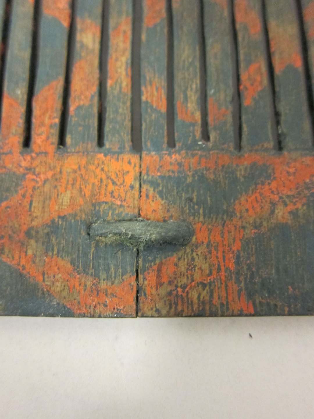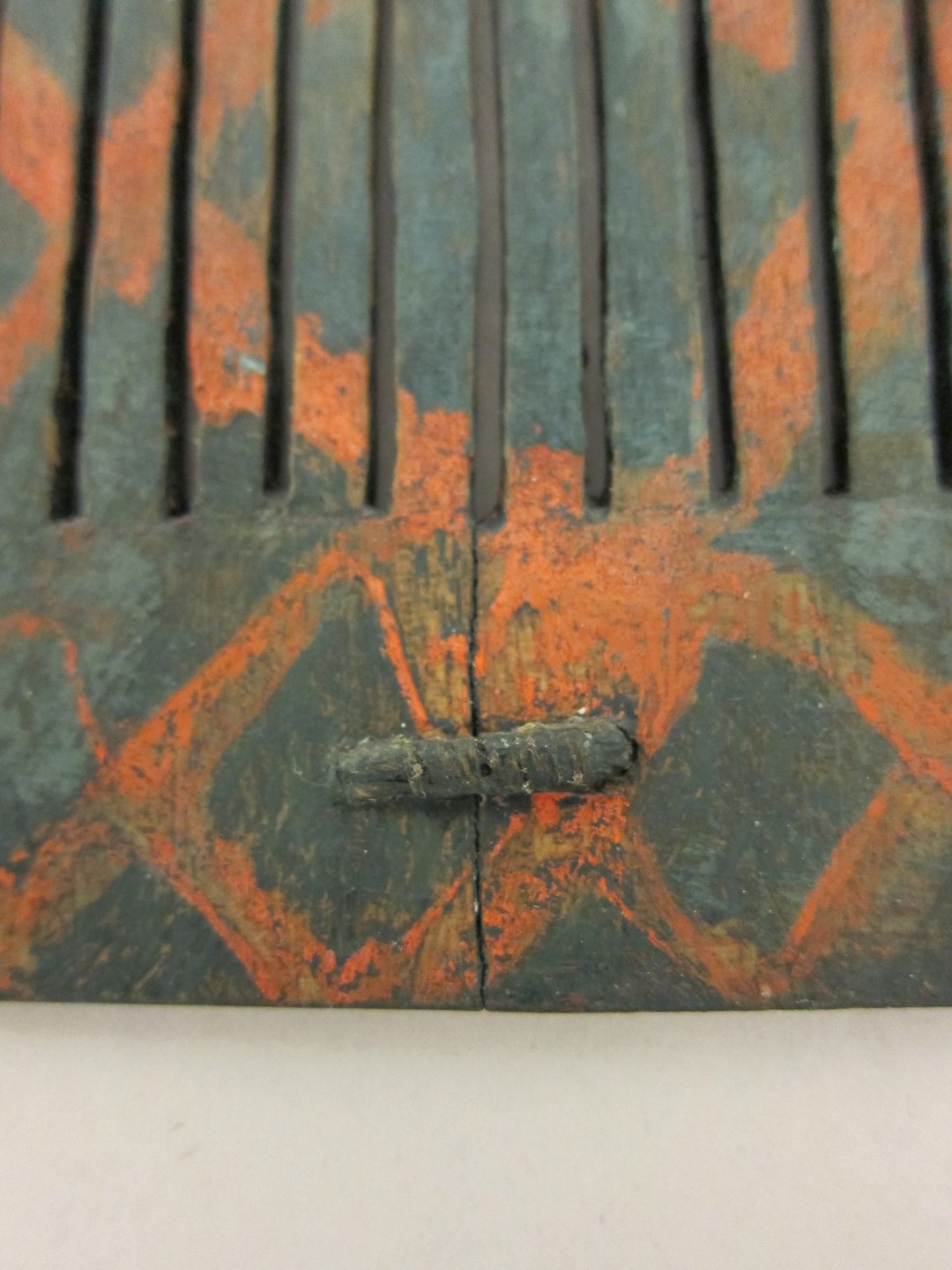 Bemærk den smukke reparation, som er udført og karakteristisk for tidsperioden.