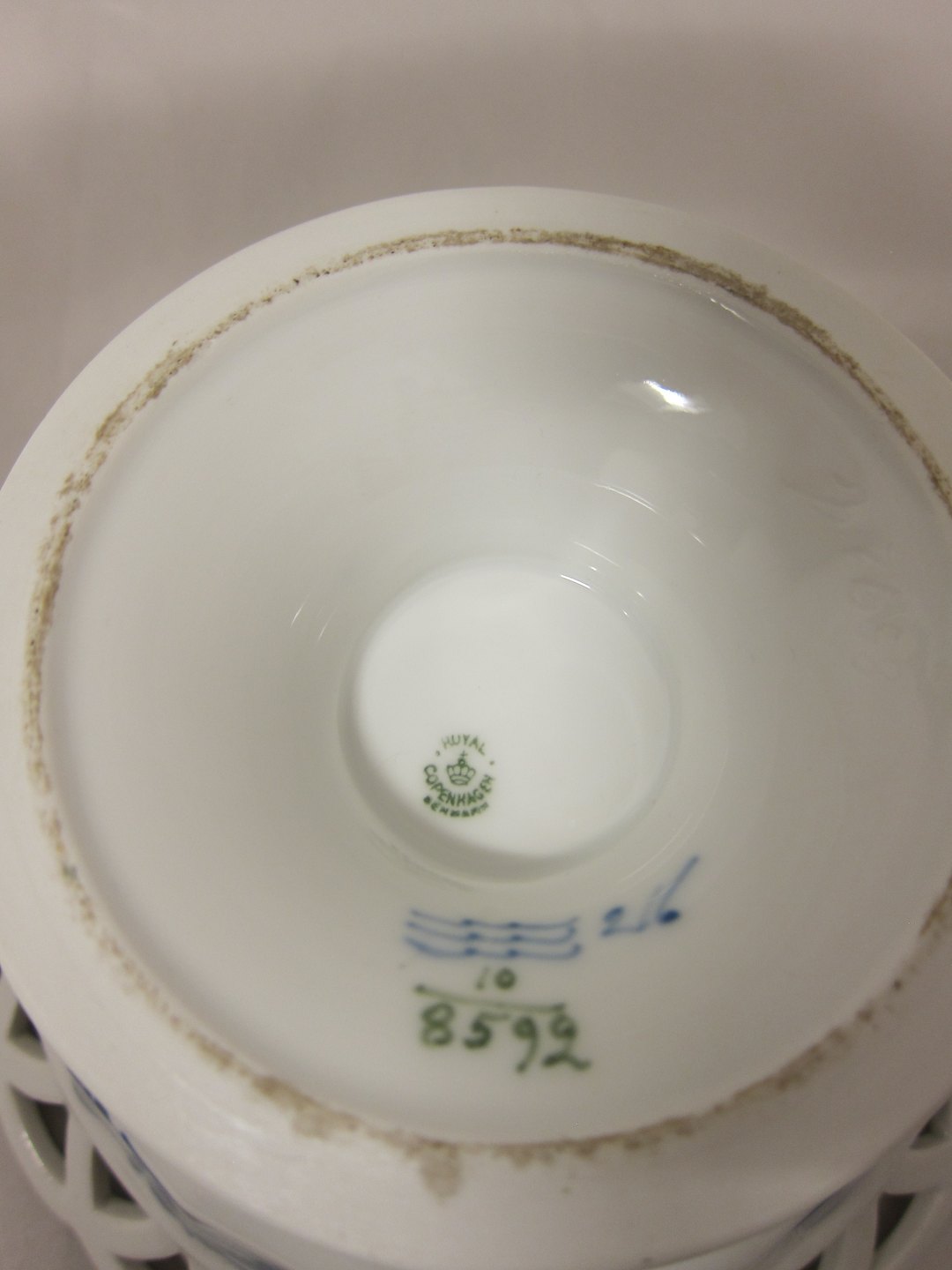 Royal Copenhagen, Blå Blomst, frugtopsats Kongelig/RC frugtopsats fra før 1928 Den meget elegante frugtopsats er med brudt kant Skålen har RC-nr. 8592 H: 15cm, Diam: 25cm Varenr.: 410103
