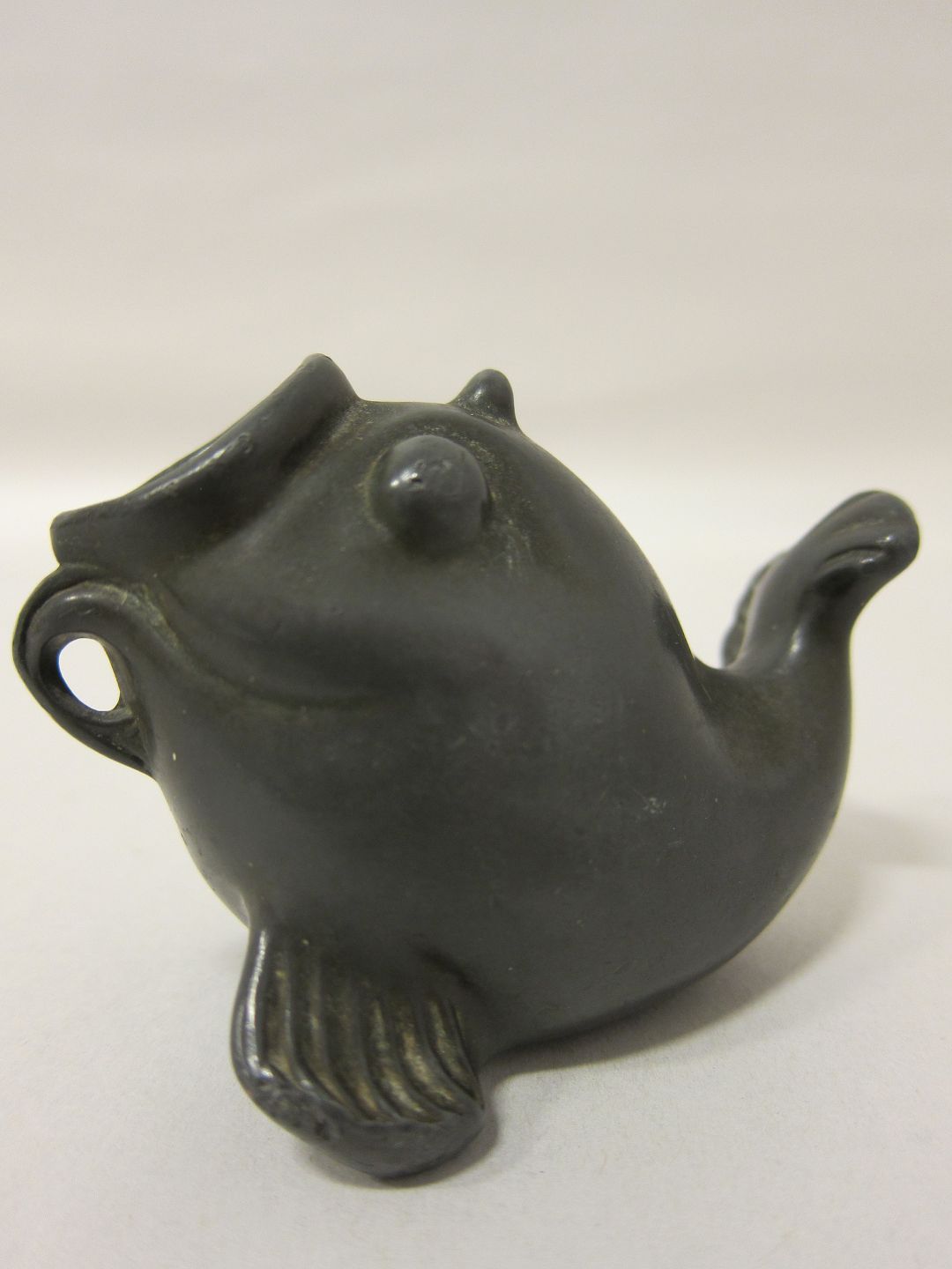 Vase som fisk af diskometal, Just Andersen L: 8cm, H: 6cm Varenr.: 41631