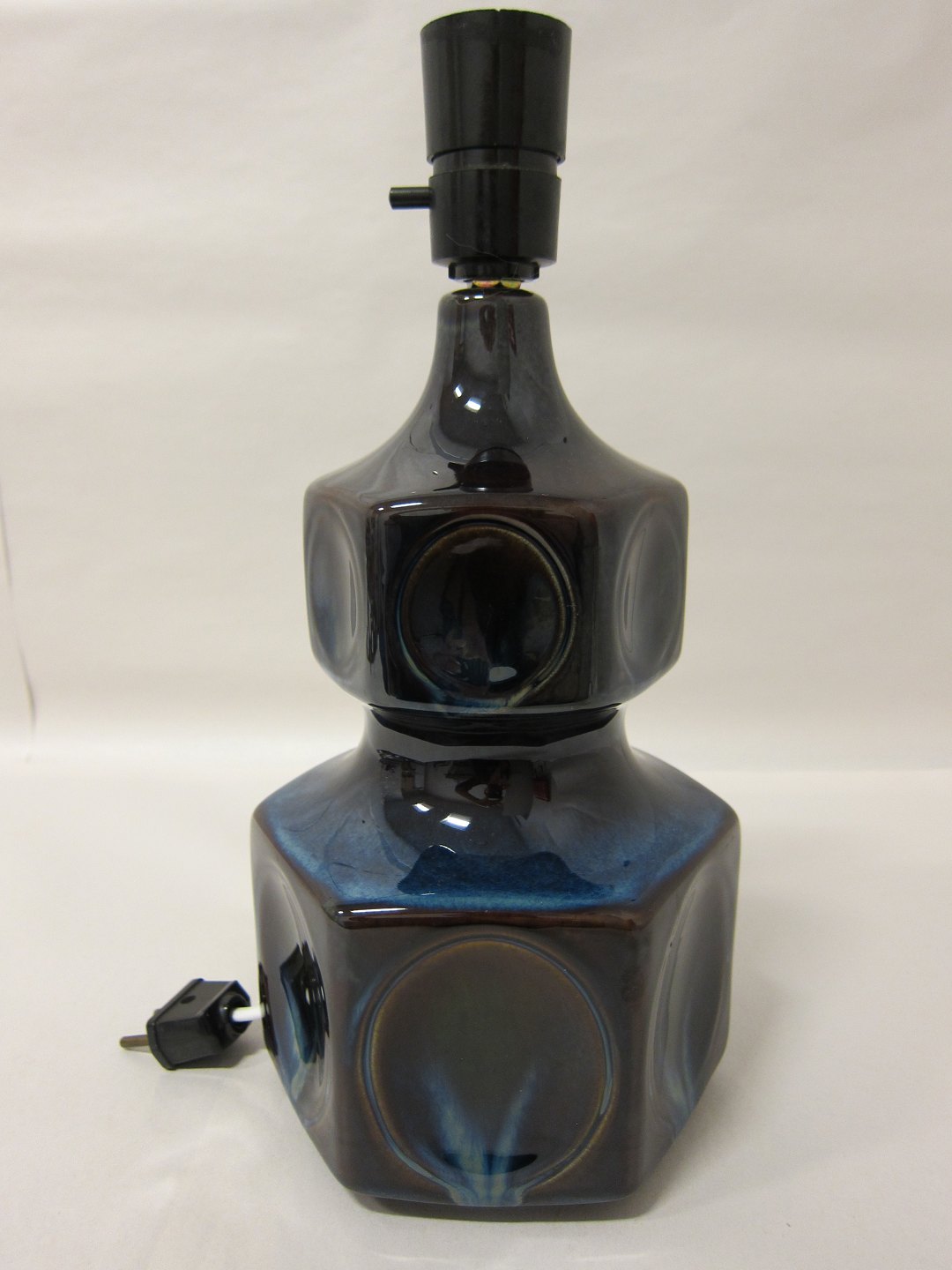Lampe, Søholm Stor lampe med smuk blå glasur Søholm Denmark Stentøj Søholm-nr.: 1062 H: 31,5cm inkl. fatning Varenr.: 41641