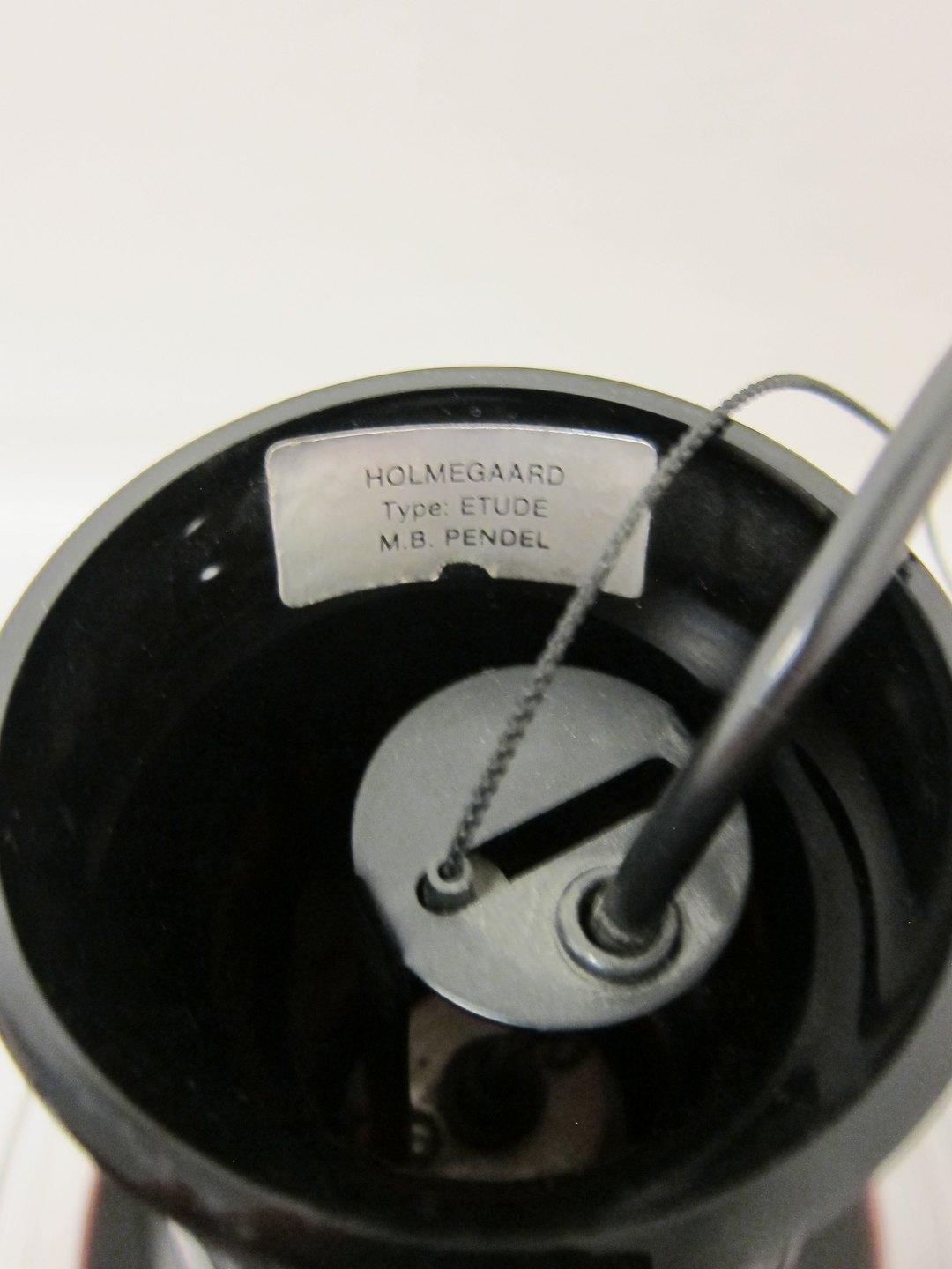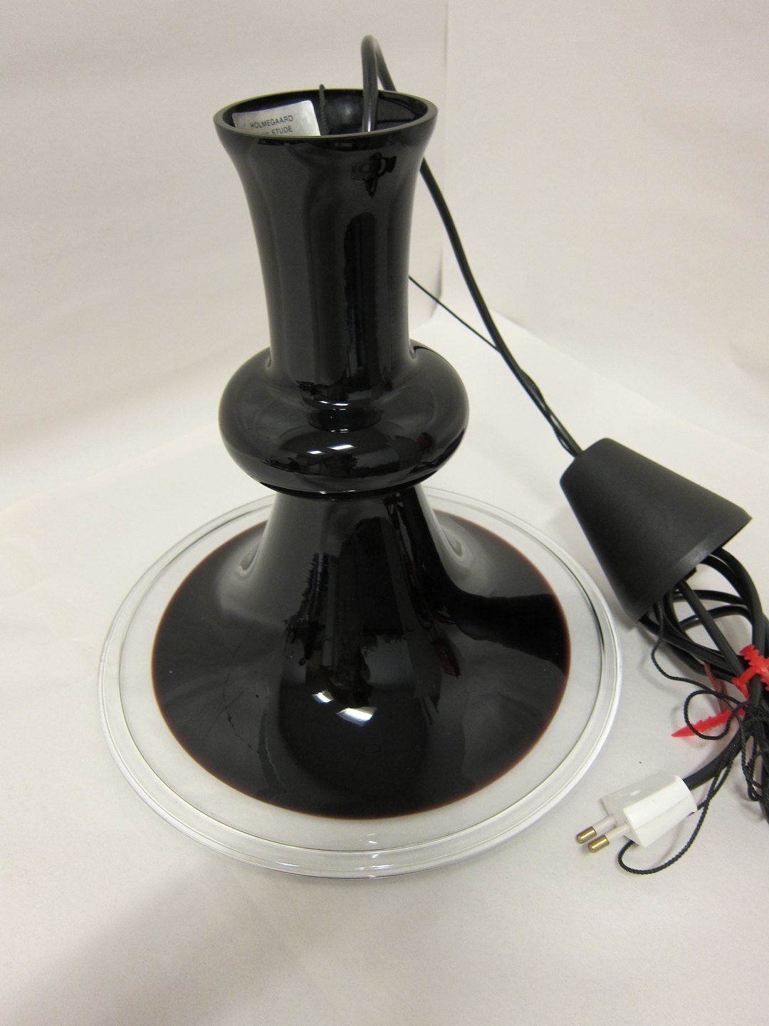 L Loftslampe, Holmegaard, glas Model: Etude, M.B. Pendel Farve: Aubergine (meget mørk rød) H: 28cm, diam: 28cm Varenr.: 21732-1006