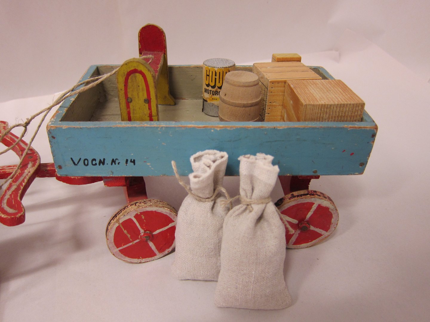 Hestevogn med last Lavet i Vestre Fængsel i 1930'erne (Fængselslegetøj) Varenr. 411111 - Se også kornhuset (andet varenr.)