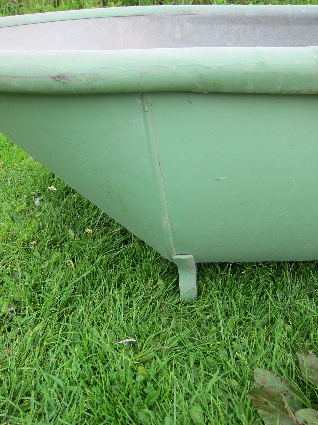 Zinkbadekar, grønmalet, med afløb og prop i kæde (se foto) Varenr.: 71762