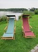 Stolene er nybetrukket med forstærket stof, og arbejdet er udført af professionel. Nyt betræk er valgt, fordi stolene er i usædvanlig god stand i det oprindelige træ og metal.