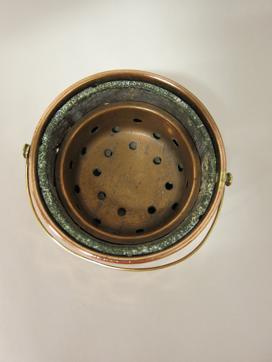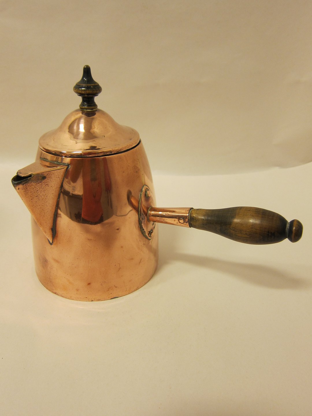 Chokoladekande "Stjertkande" af kobber inkl. underdel Fra ca. 1820 Ikke stemplet H Kande: 24cm H underdel: 10cm, Diam: 14cm Varenr.: 411112-51291