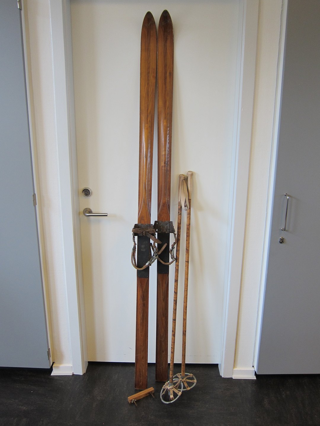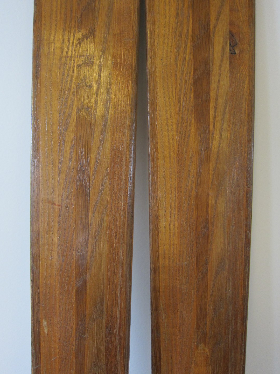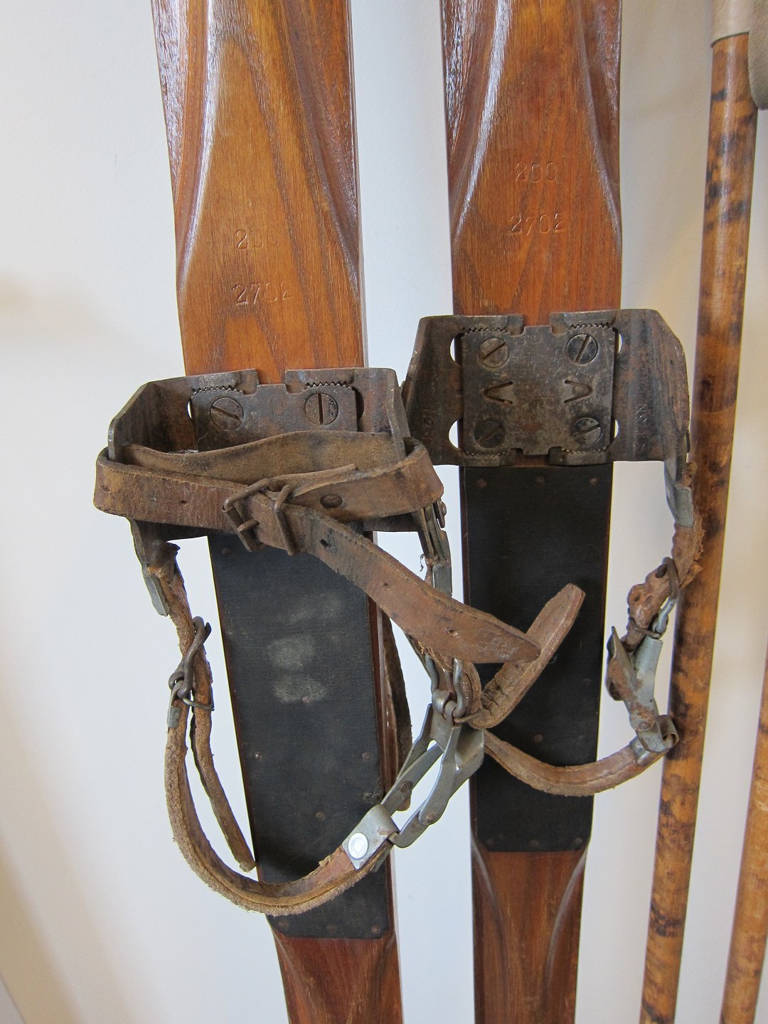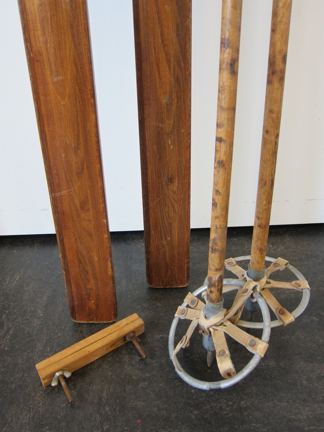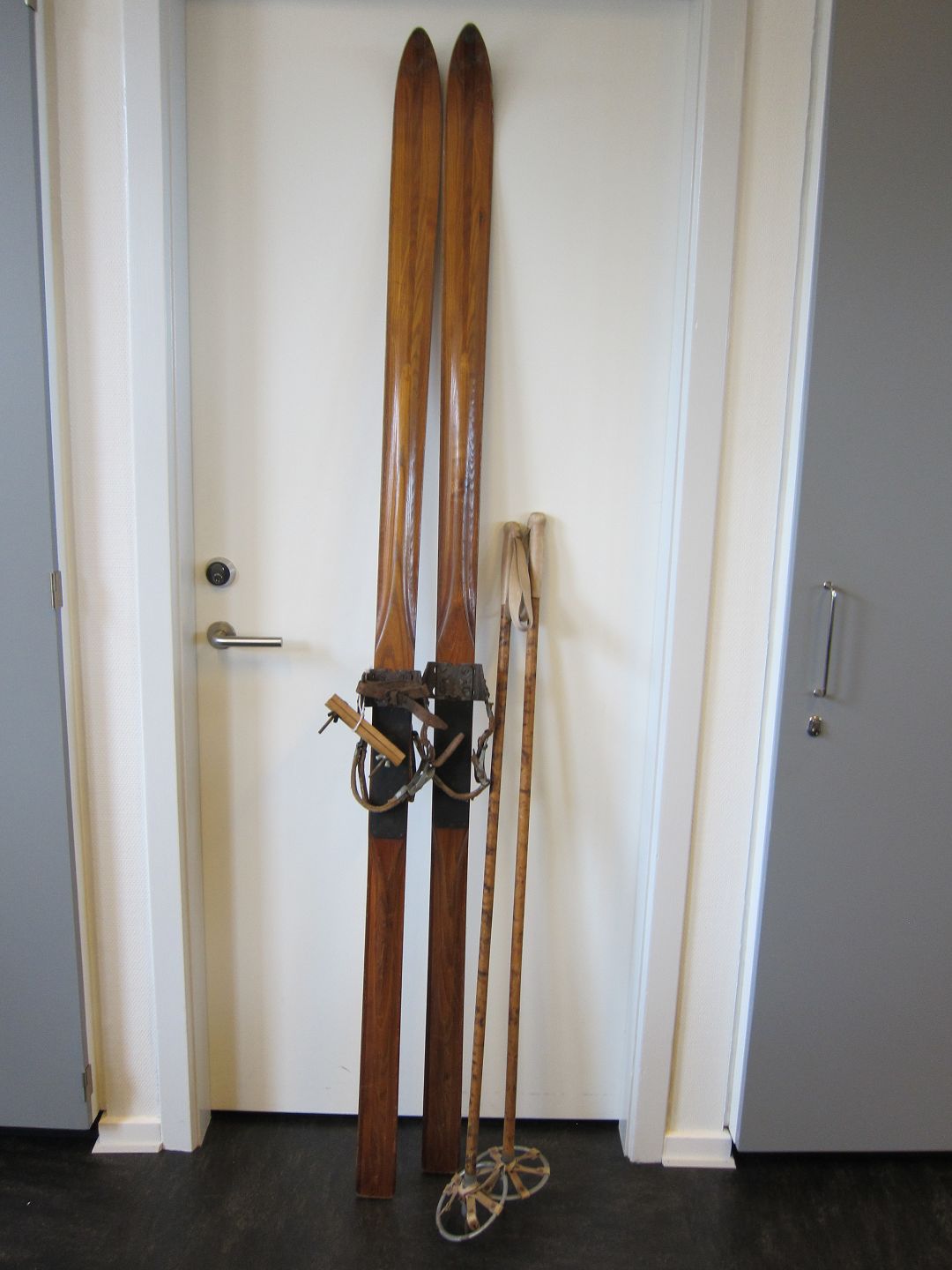 Gamle langrendsski i træ med bindinger og stave (se fotos)