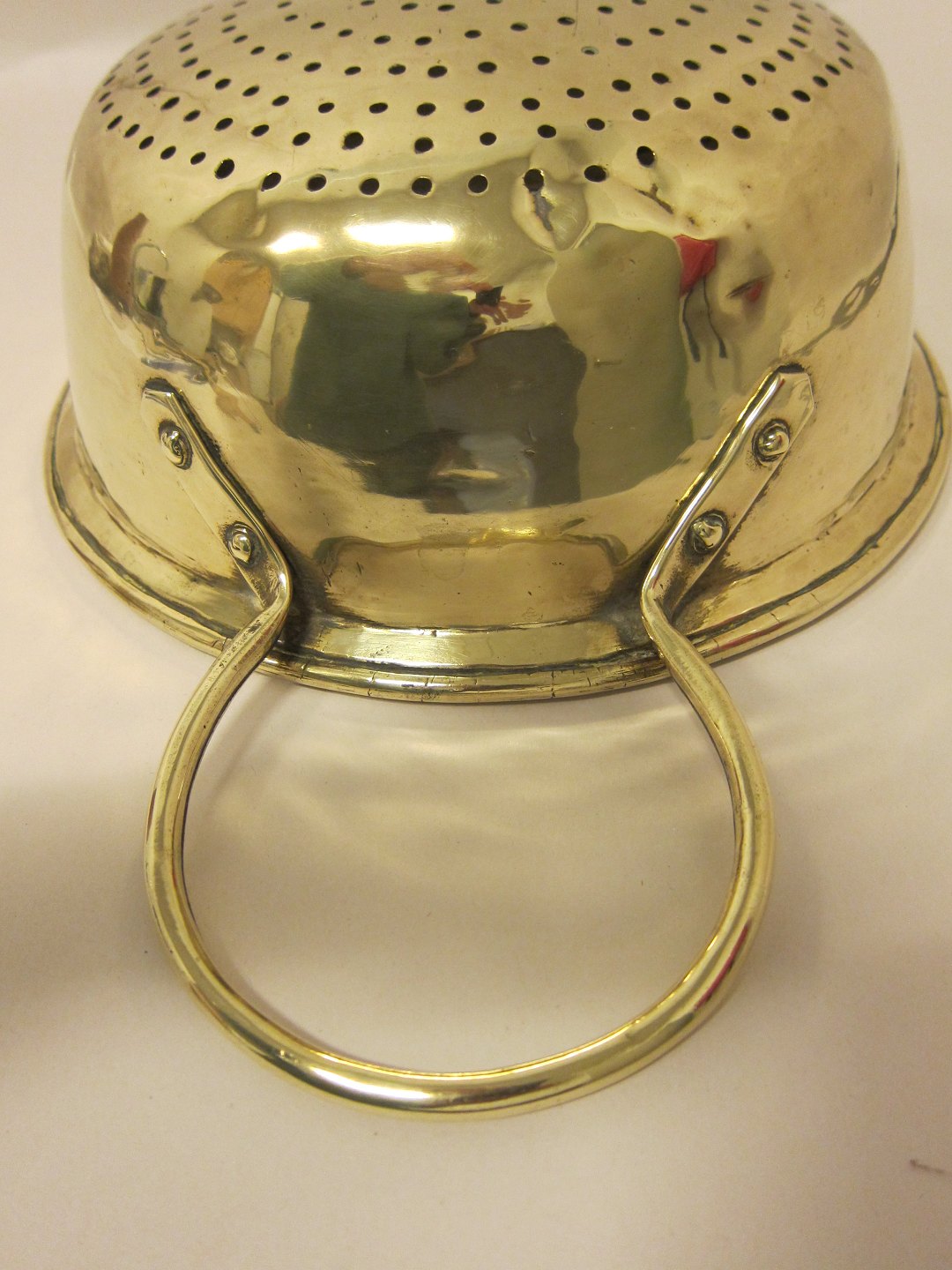 Dørslag af messing Antikt, stort dørslag med 2 smukke ører Stemplet Diam. m/ører: 45cm, u/ører 27cm H: 11,5cm Varenr.: 21801