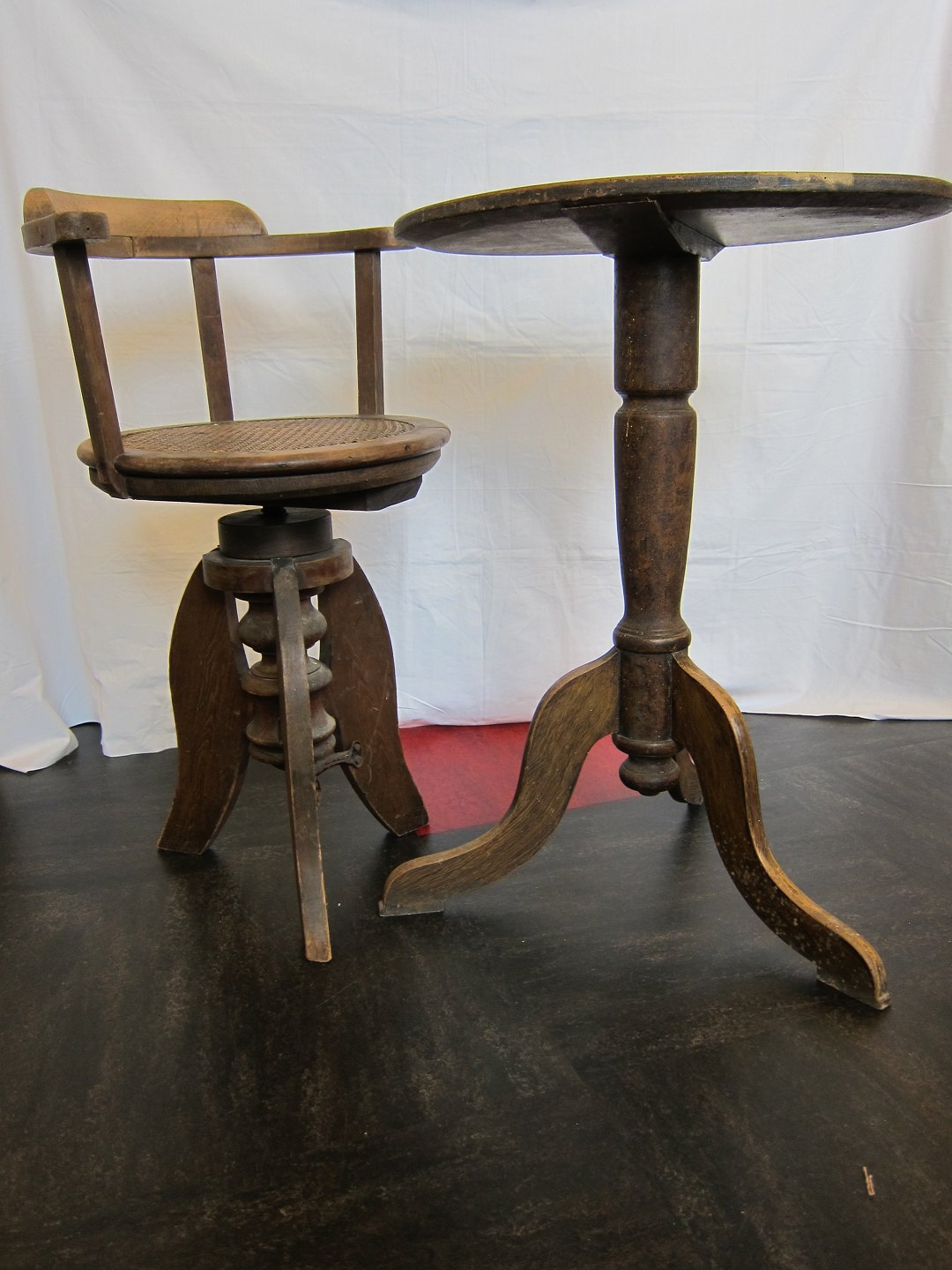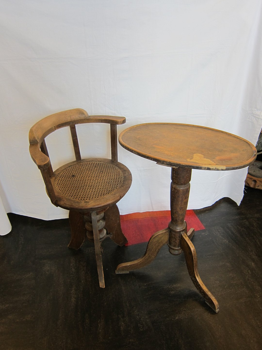 Antique chair from a child hairdresser with a seat made of canework