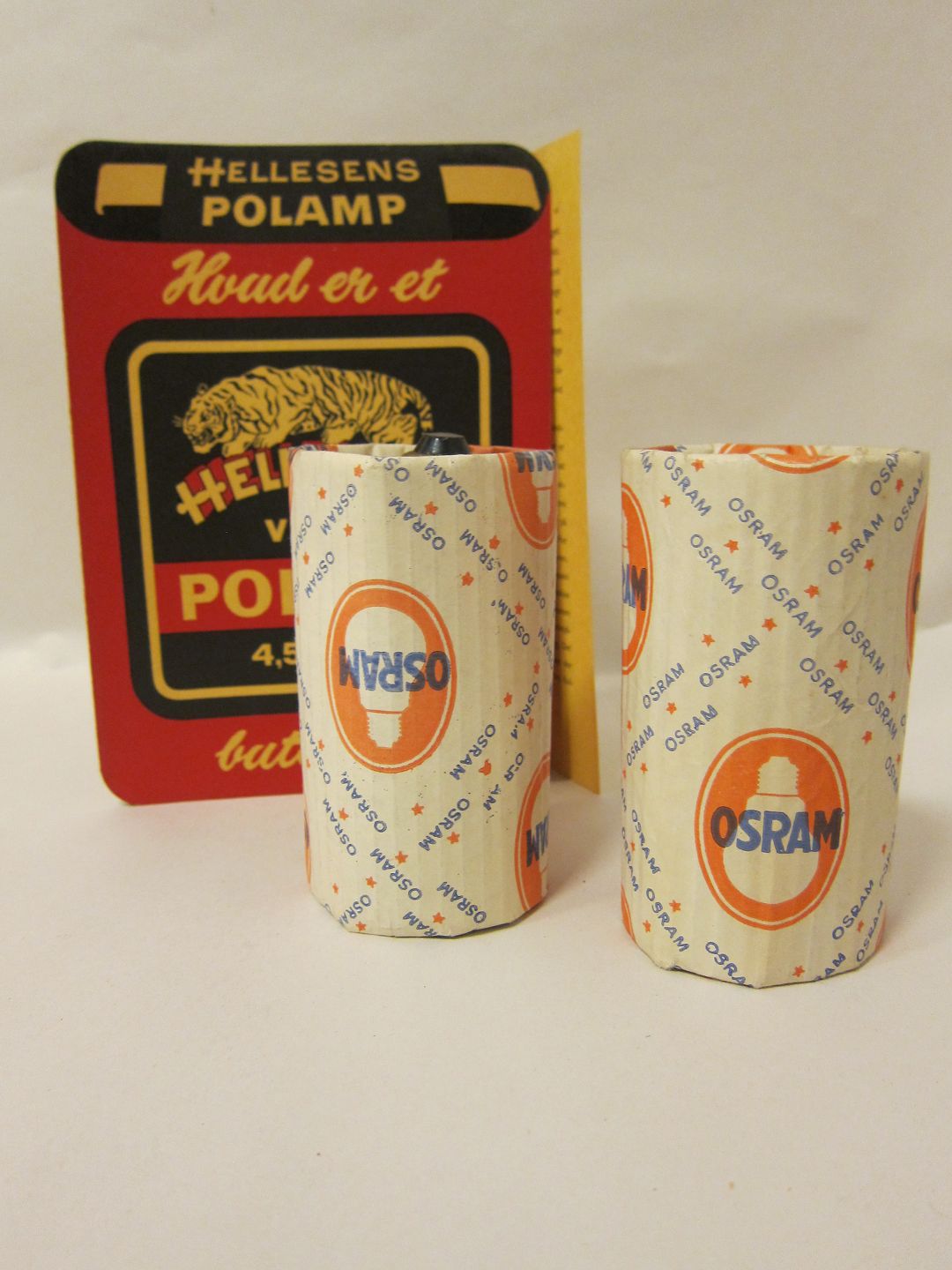 Hellesens 3-Werbeschild und Osram Glühbirnen