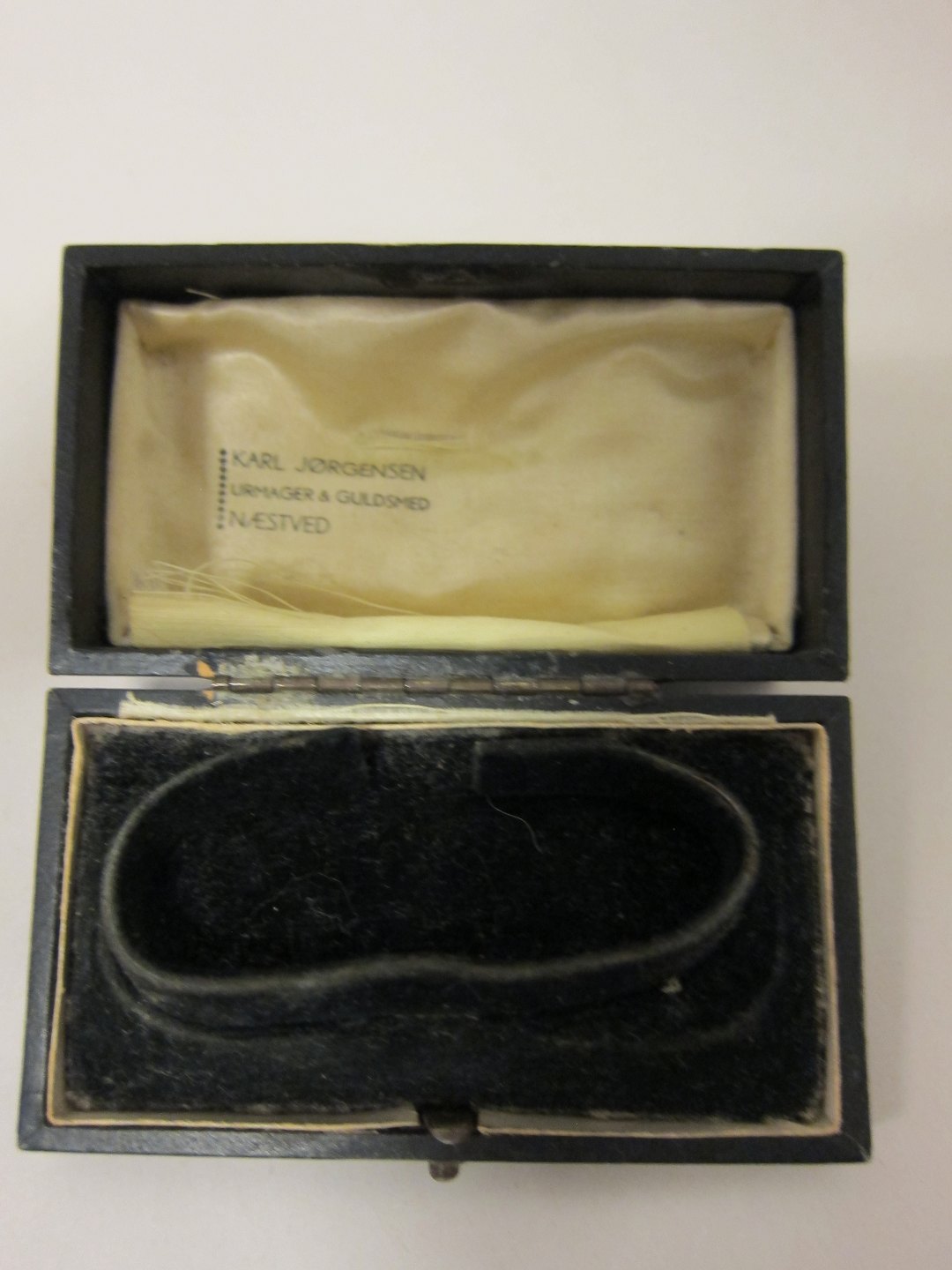 Den øverste med tekst i låget: Karl Jørgensen, Urmager & Guldsmed, Næstved
