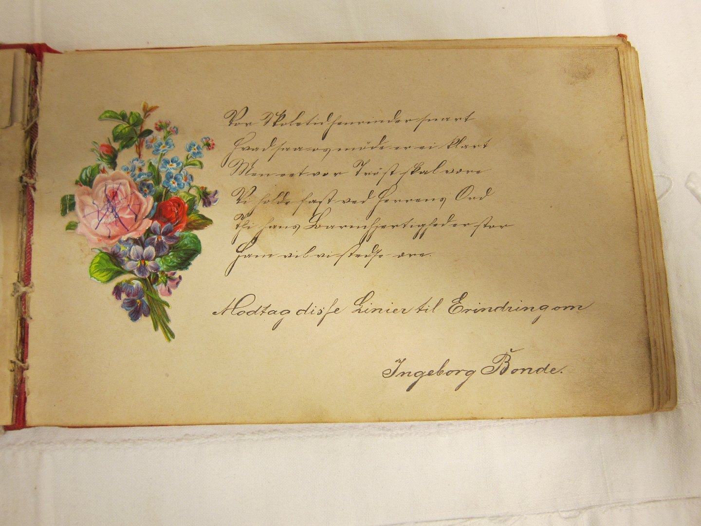 Some of the persons who have written poetry in the book: Ingeborg Bonde, Jens Clausen og Jørgen Petersen i Holm (1884)