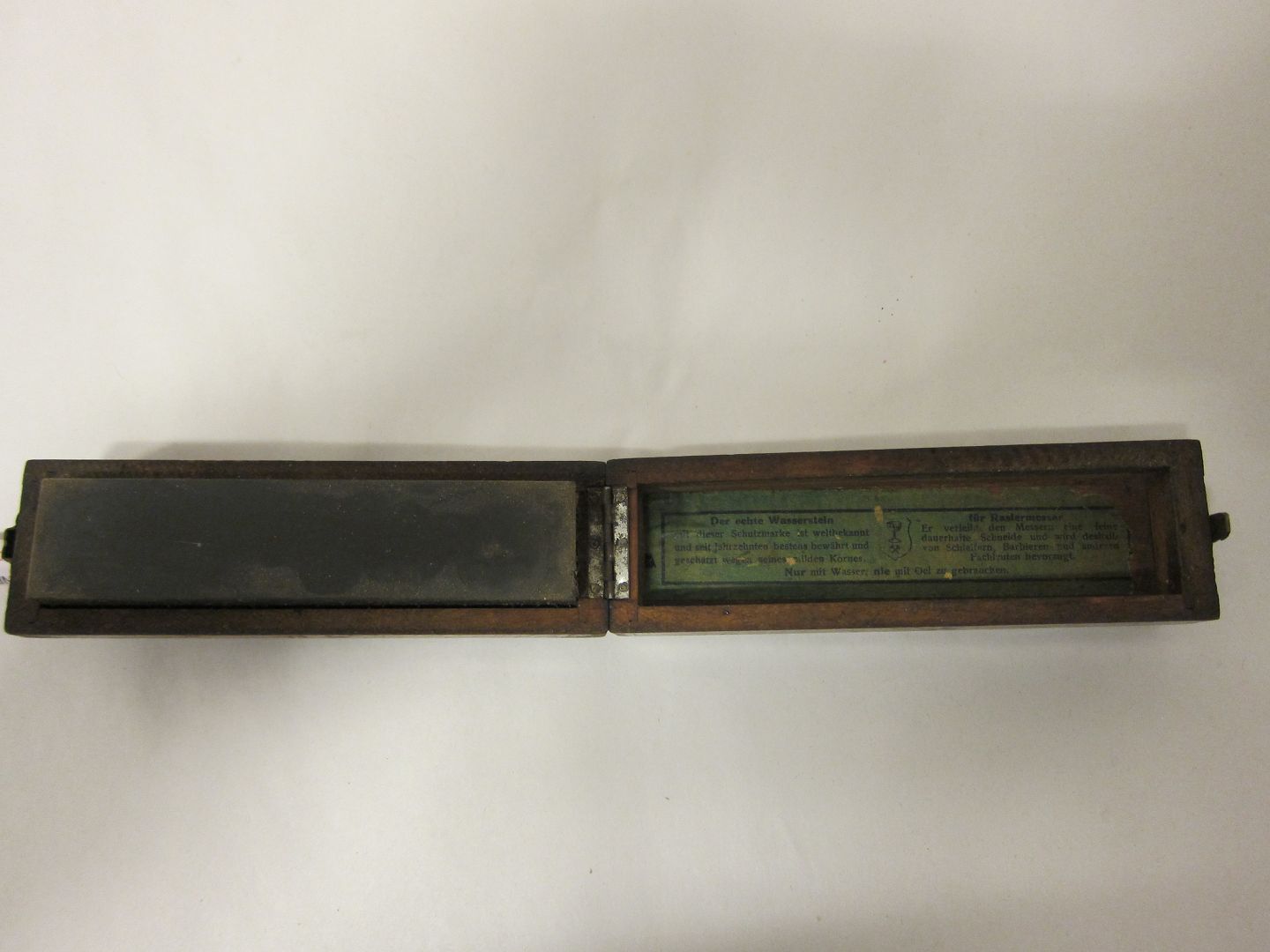 The old whetstone/hone comes in the original box of wood with the instruction.