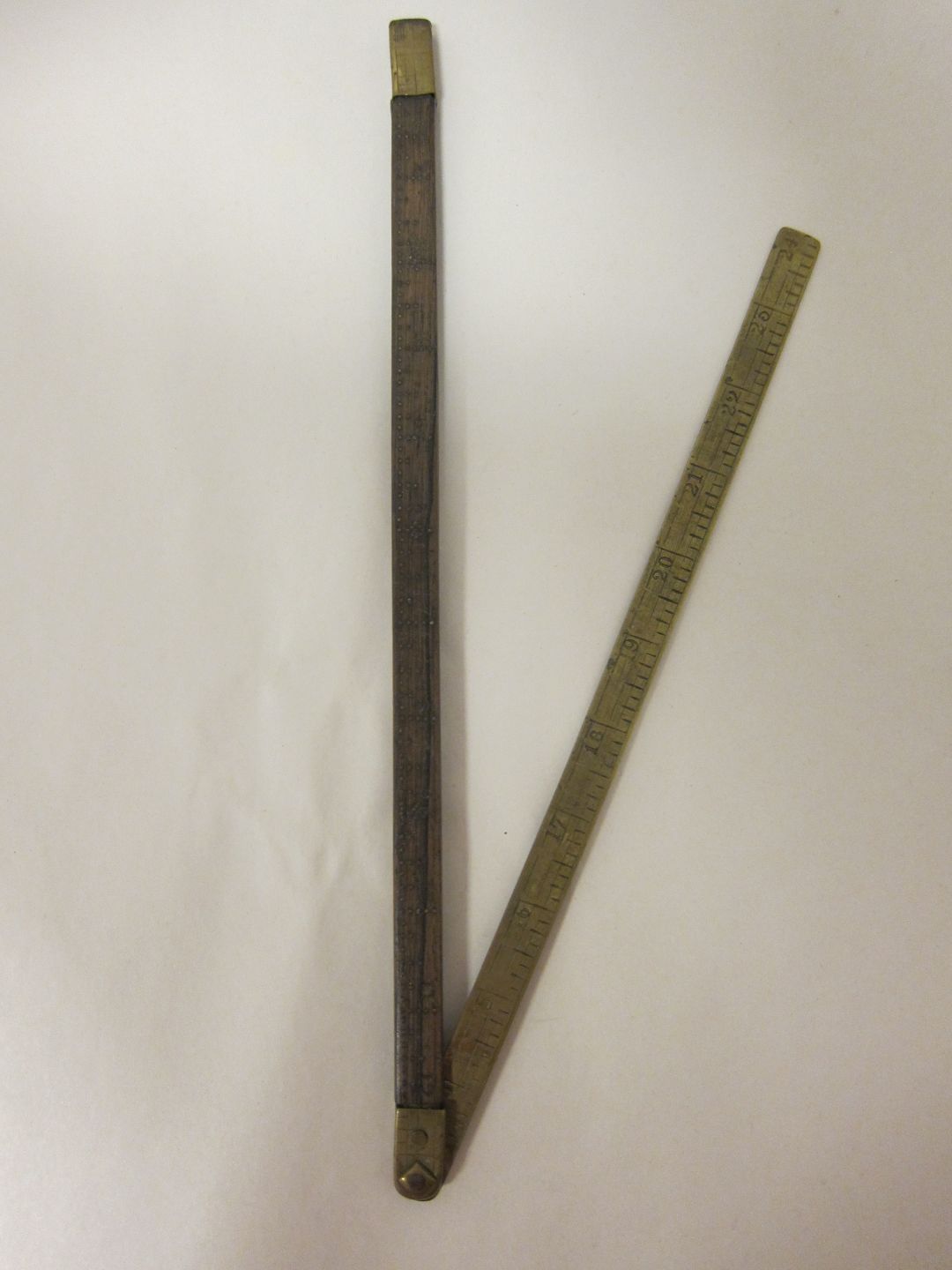 Gammel tommestok af træ med med messing og mange detaljer - se fotos