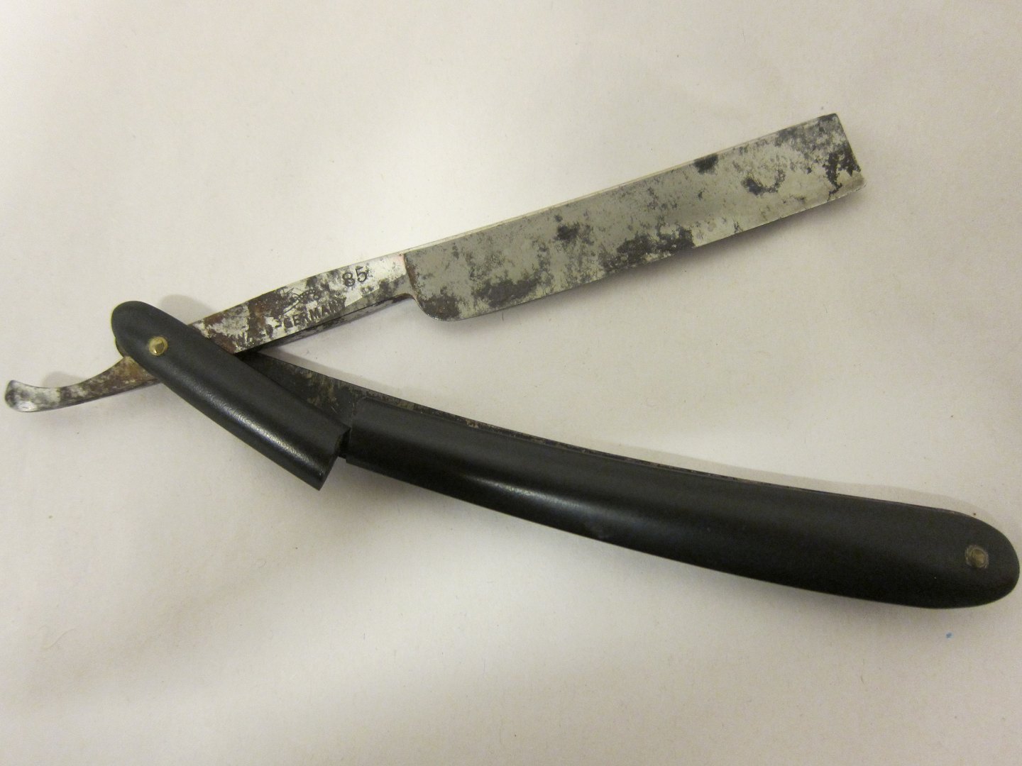 Gammel barberkniv af vintage mærket "Wald Germany 85"