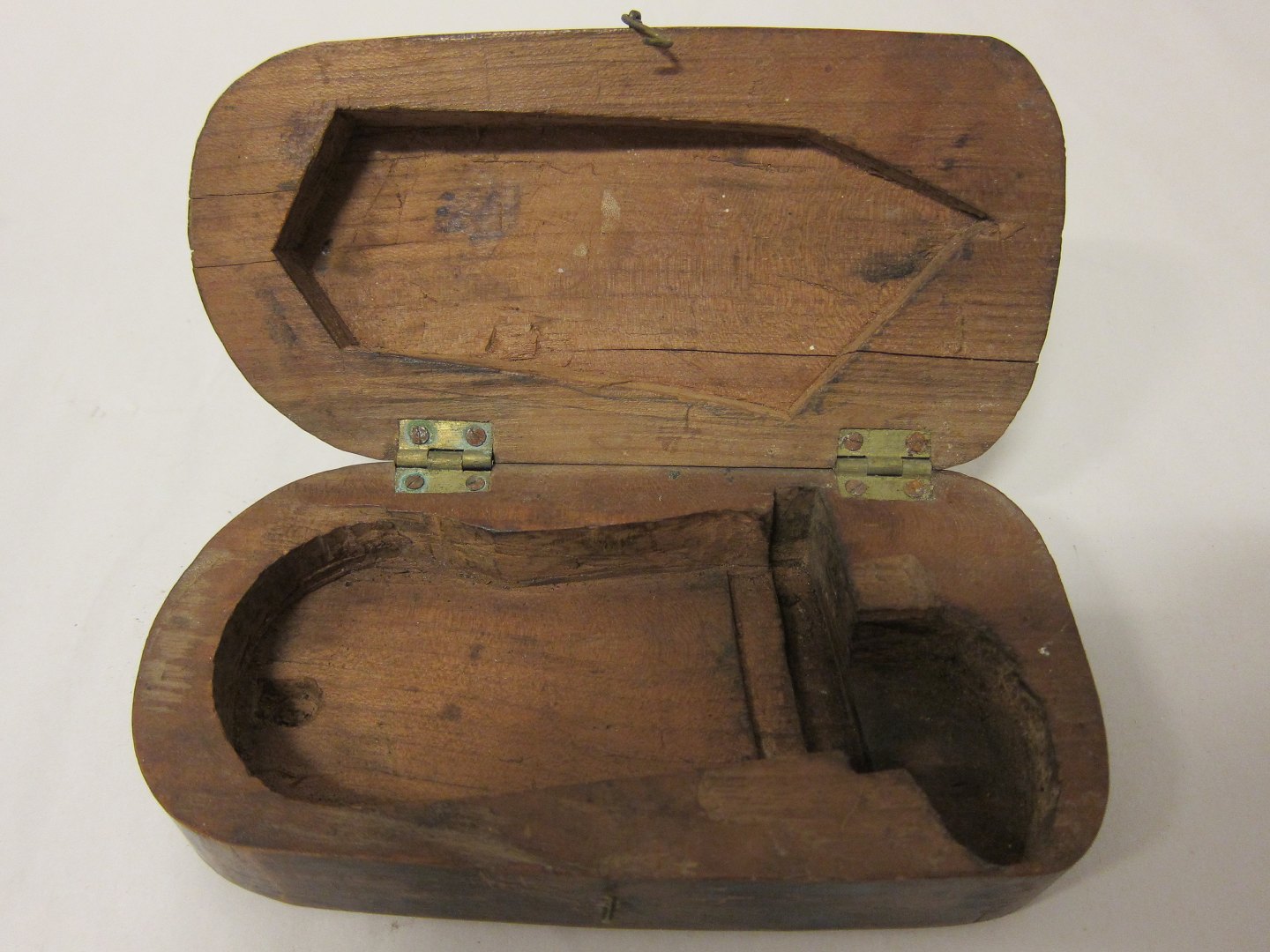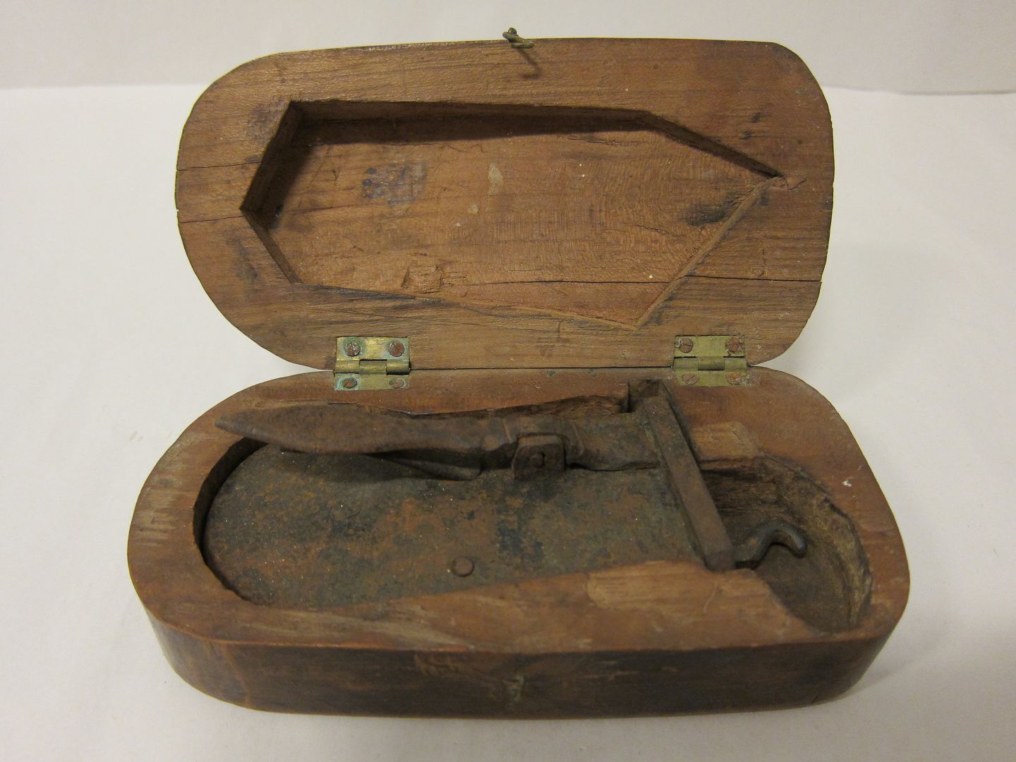 Antikt åreladningsinstrument, som er håndsmedet og i sin originale trækasse, som er håndsnittet.