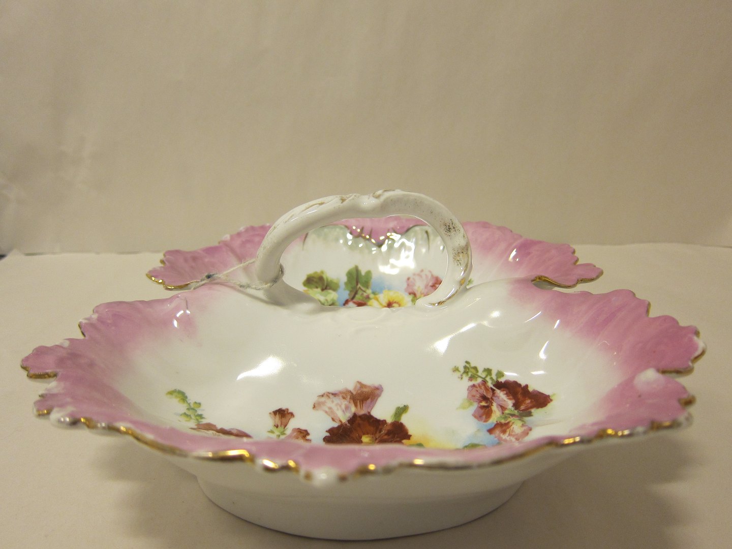 Utrolig dekorativt antikt fad, som er 2-delt med en meget smukt formet hank. Se de smukke dekorationer.