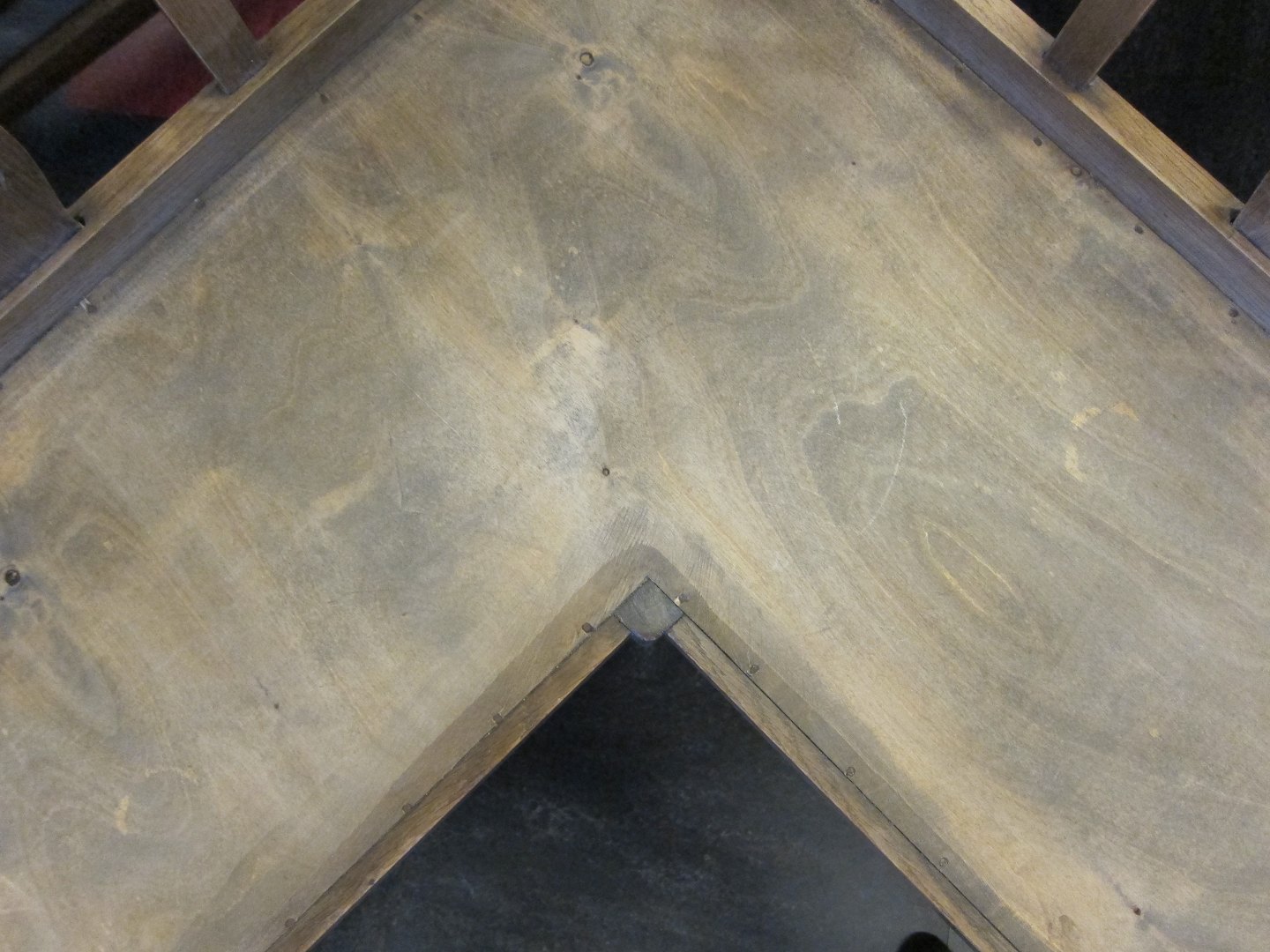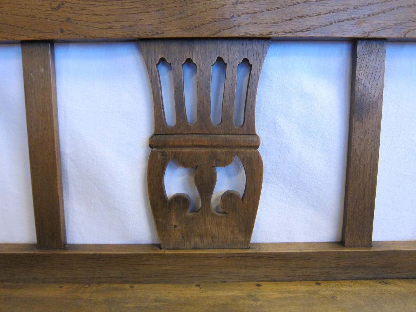Hjørnebænk, med smukt dekoreret ryg