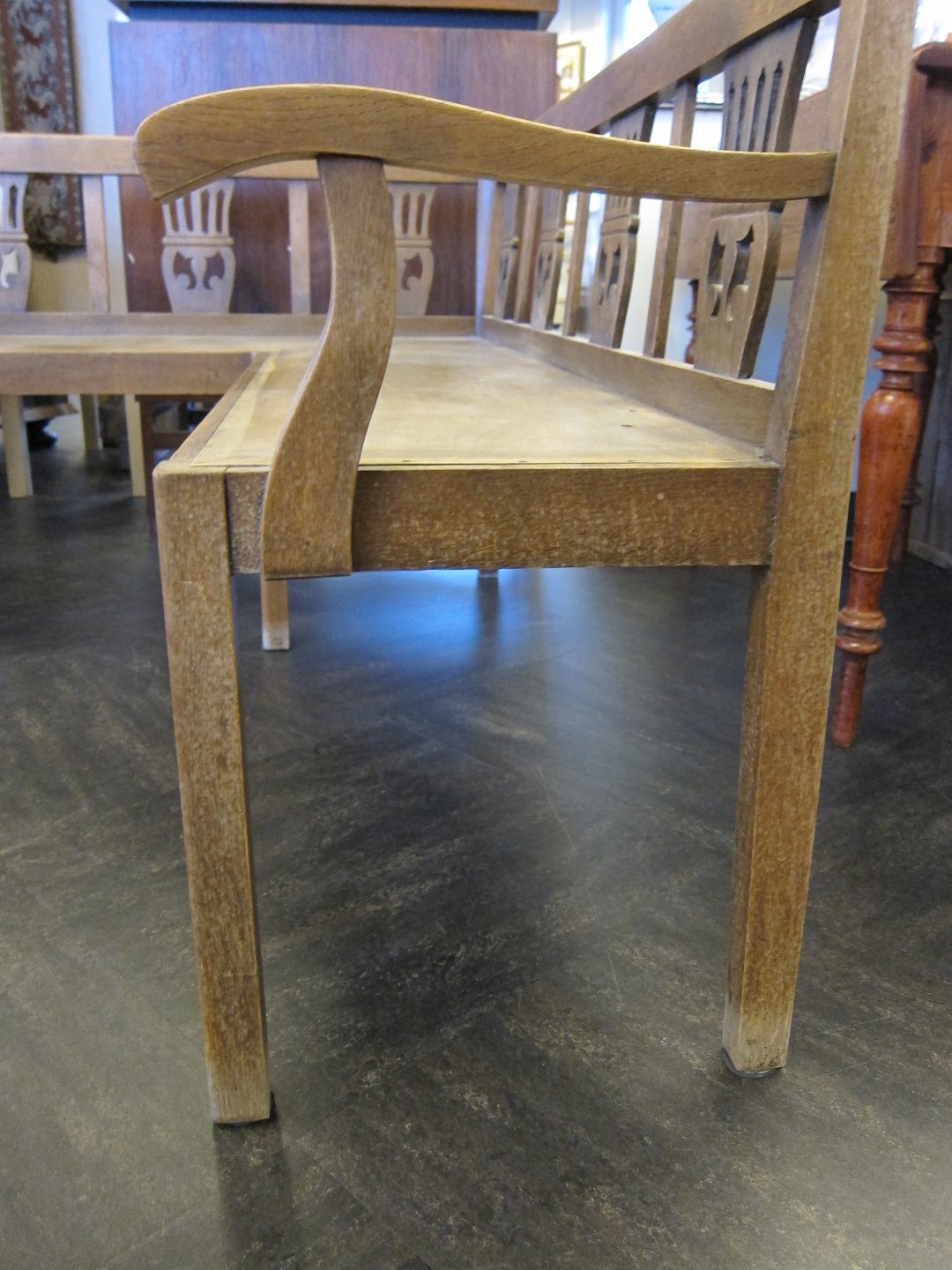 Bemærk: Armlæn i den ene fastgjort med nye skruer (ses tydeligt på foto, så du tydeligt kan se, hvad der er repareret)
