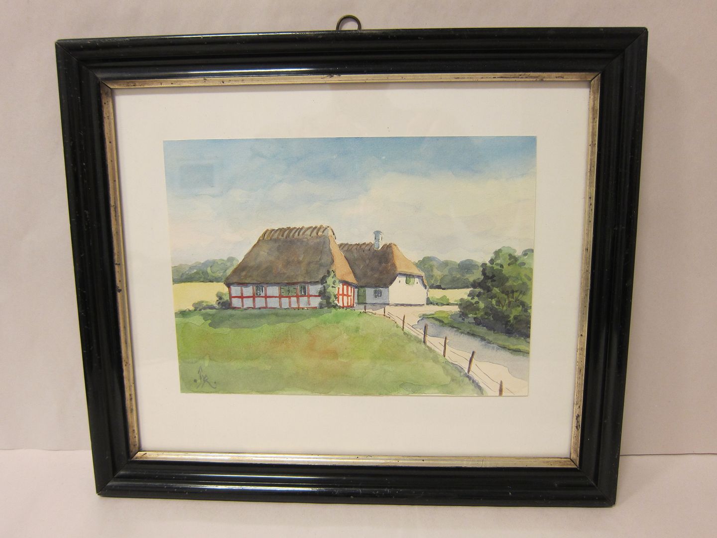 Akvarel Akvarel med stemningsfuldt motiv fra Als Af Hertha Raben I gammel ramme 35cm x 30cm Varenr.: 1007