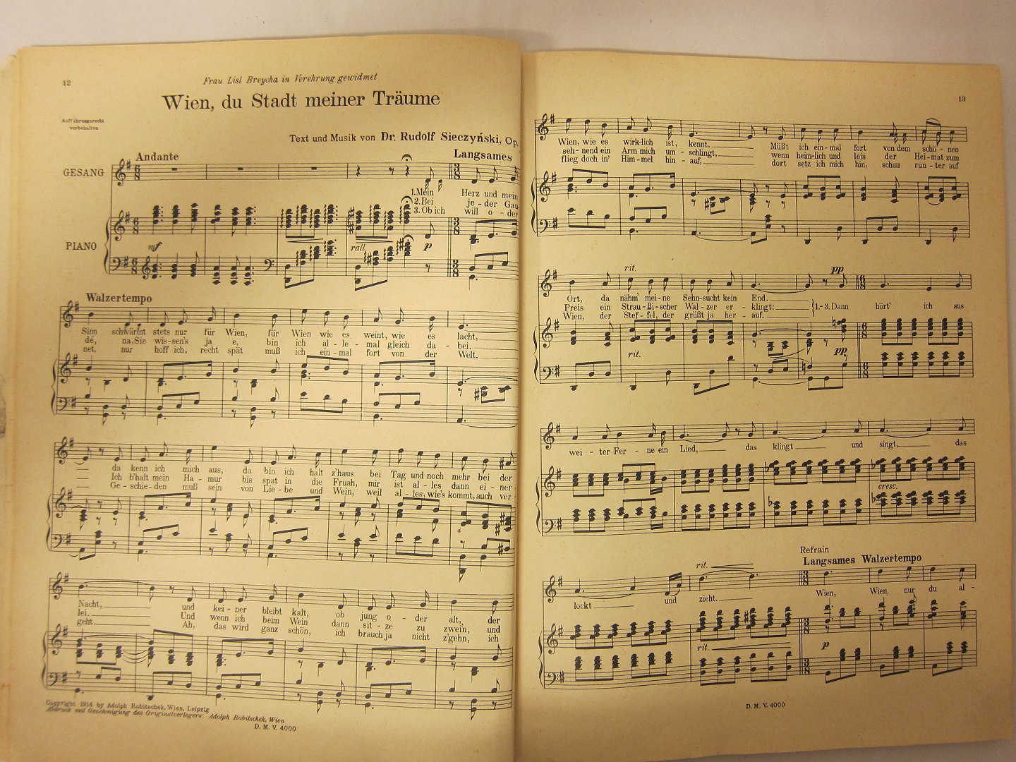 Noder og tekster for wienermelodier, - de skønneste og mest kendte wienerlieder