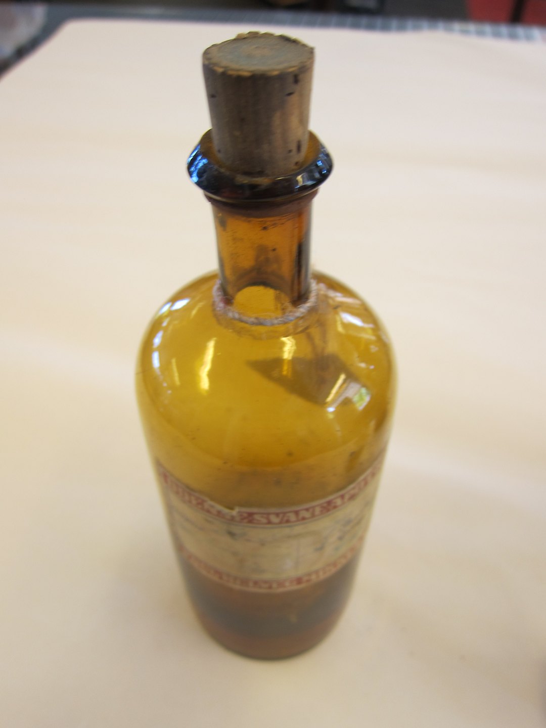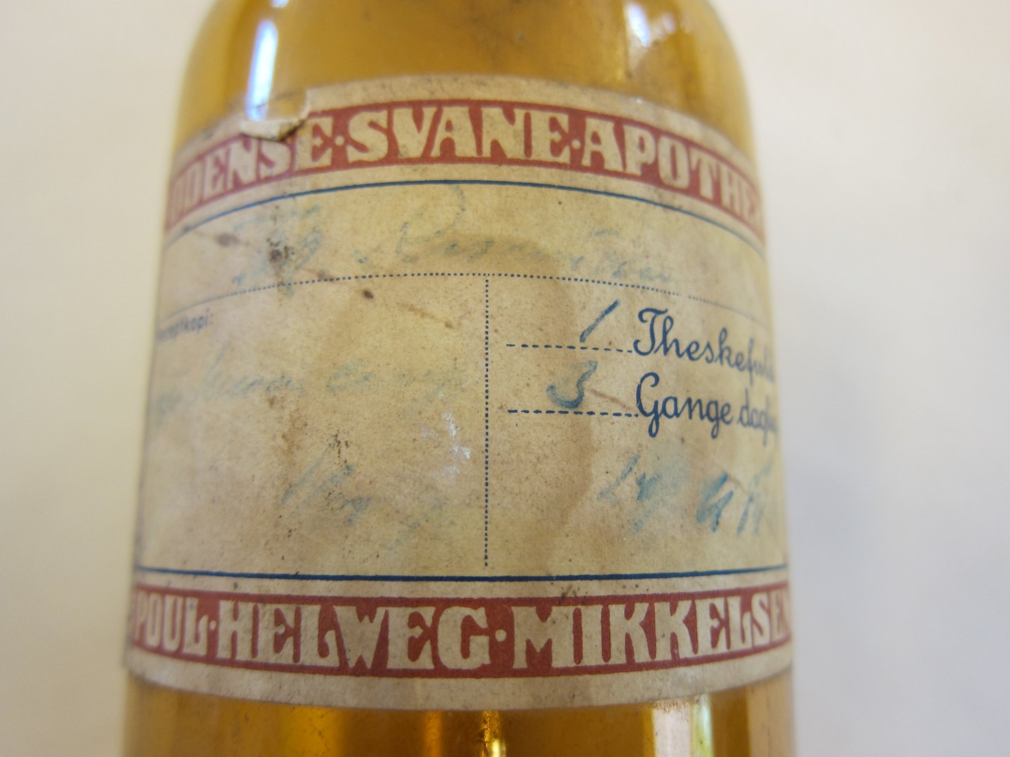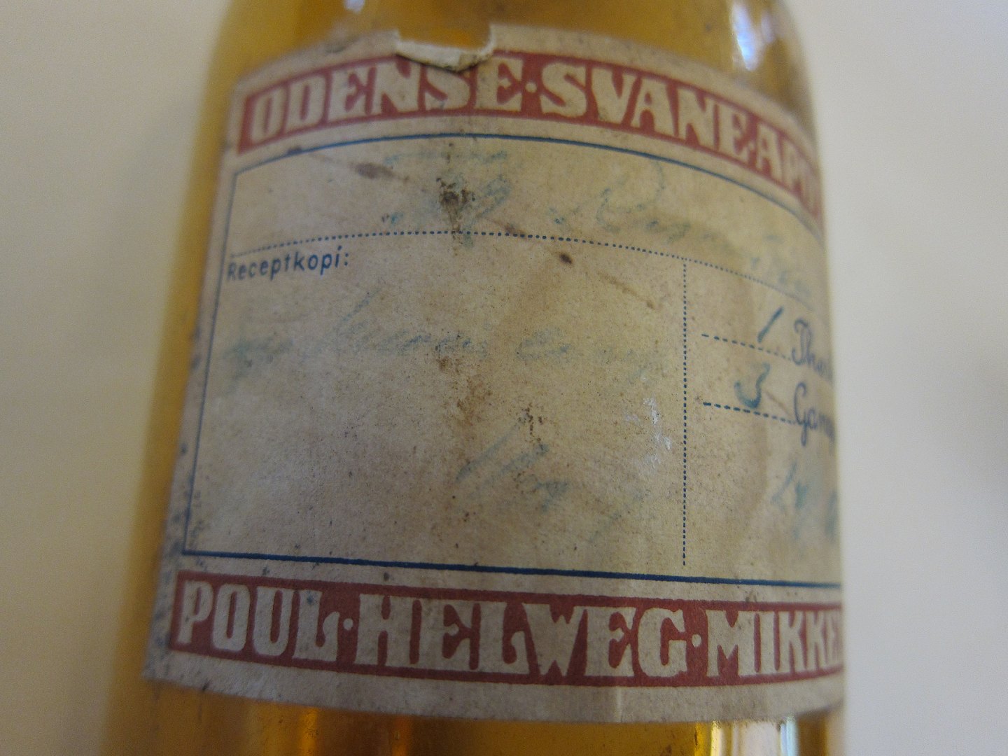 Gammel apotekerflaske fra Odense Svane Apothek, Poul Helweg Mikkelsen