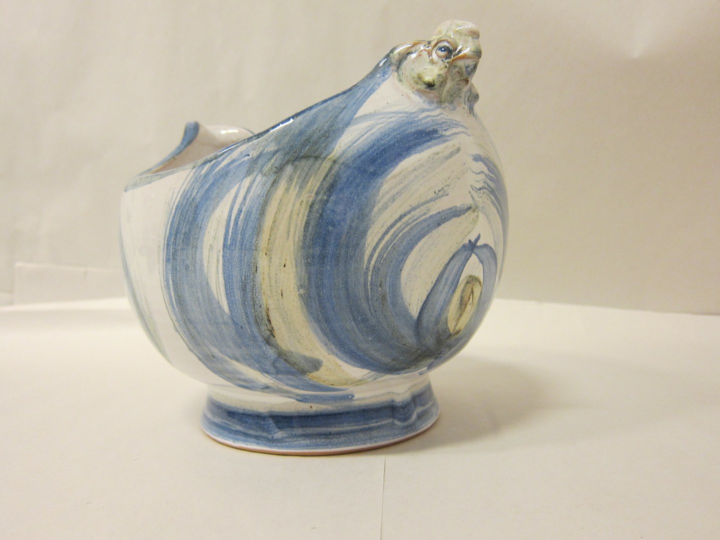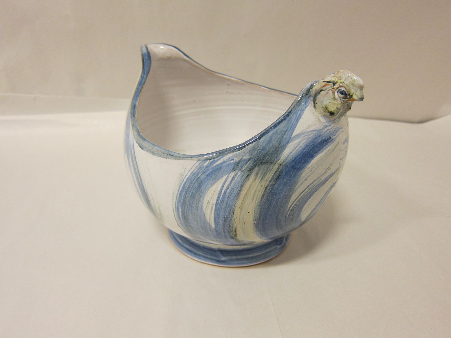 Bowl - formed as a hen, pottery Design: Viggo Kyhn With signature H: 17cm, L: 21,5cm Articleno.: 1005