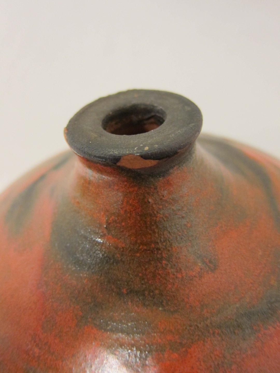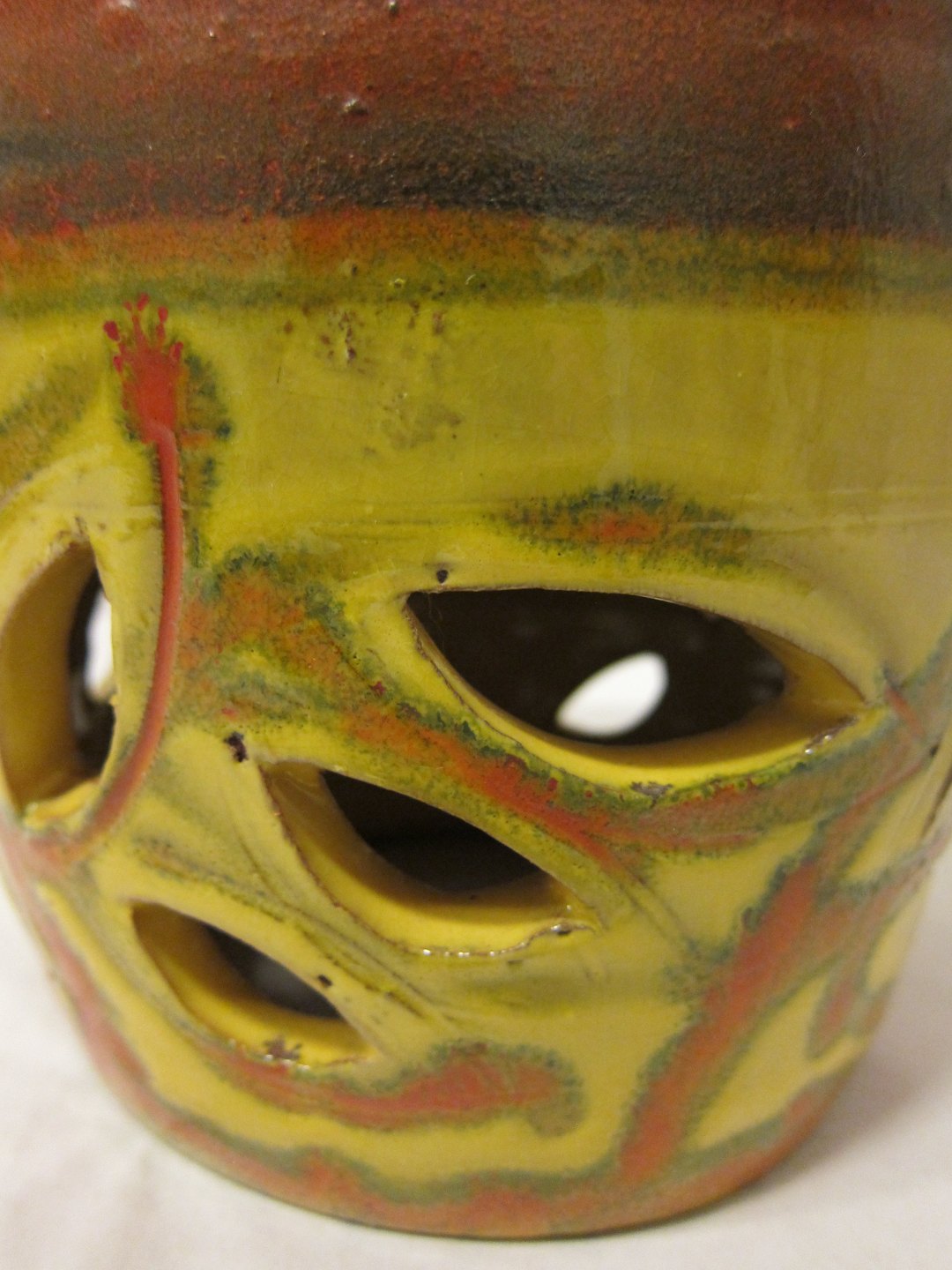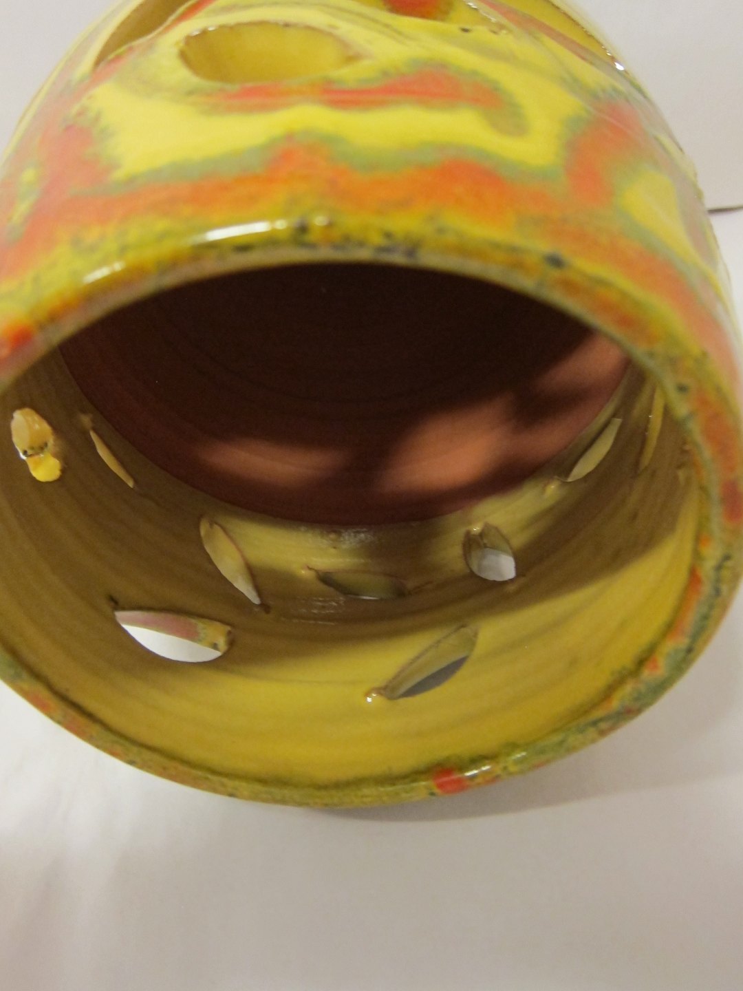 Lampeskærm/lampe af stentøj, retro Meget stemningsfuld med de orange, brune og gule nuancer H: 25cm Bemærk: Lille afslag (se foto) Varenr.: 1006-31132