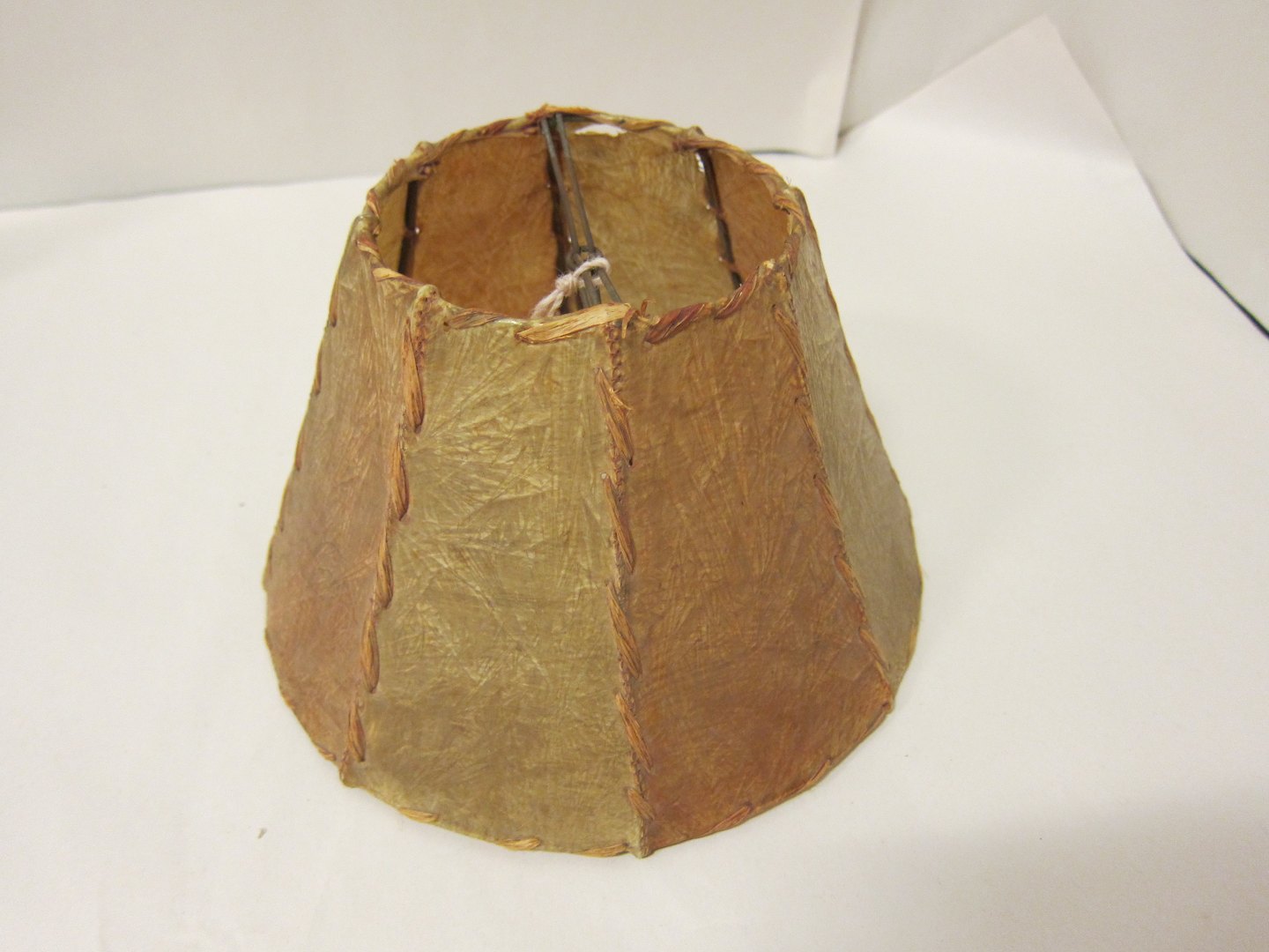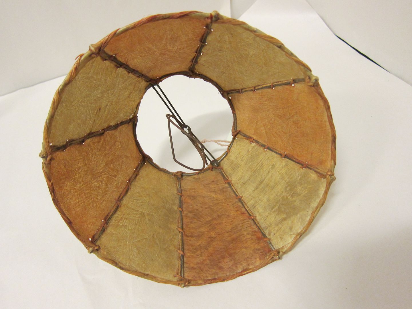 Lampeskærm Antik lampeskærm lavet af skind Bemærk: Lille defekt (se foto), ellers rigtig flot stand i forhold til alderen Varenr.: 1006