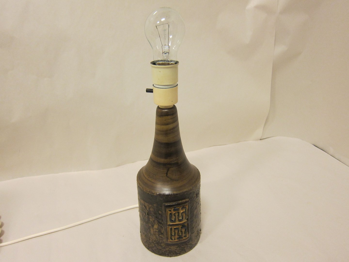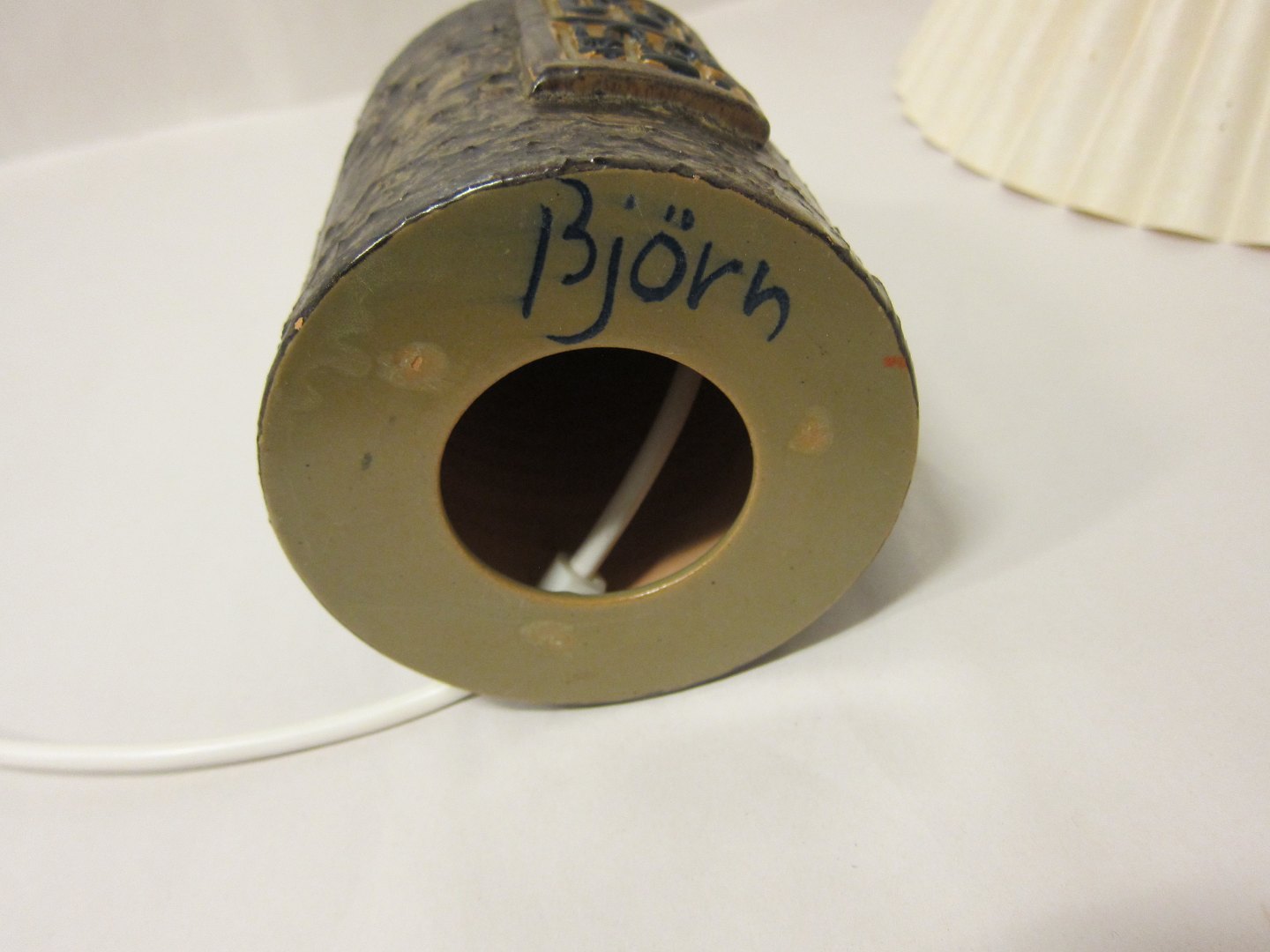 Keramiklampe, - ægte retro Bordlampe af keramik, signeret "Bjørn" Prisen er inkl. skærm Fra ca. 1970 H: Se foto Varenr.: 81113