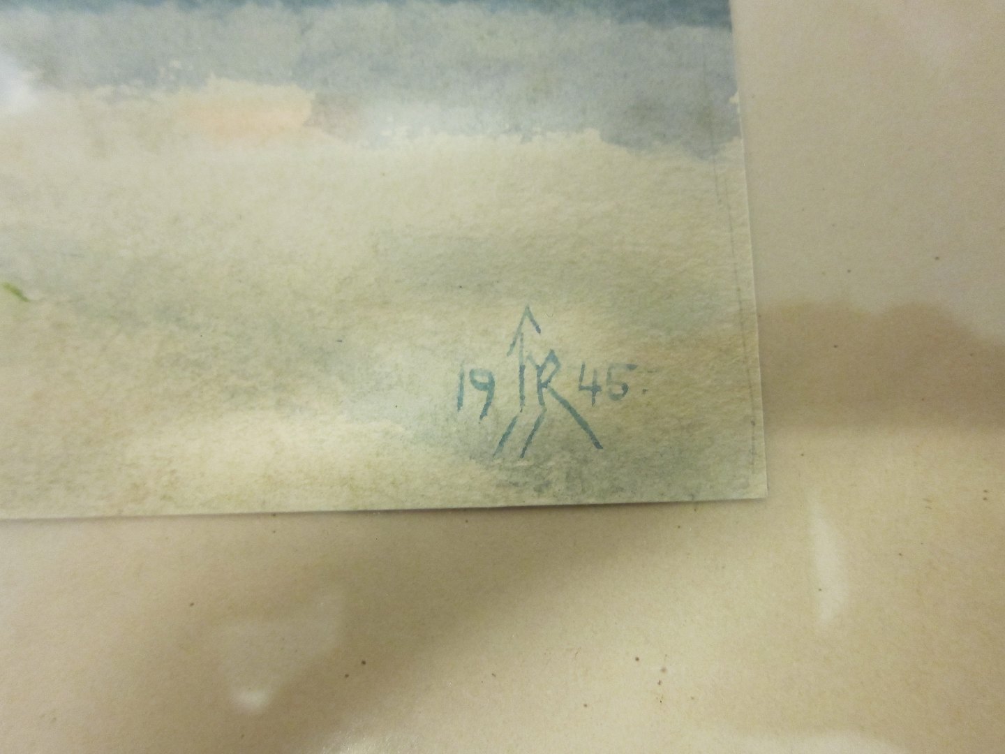 Akvarel, indrammet Af Hertha Raben Akvarel med stemningsfuldt motiv fra Broballe/Als Fra 1945 39cm x 35cm Flot stand Varenr.: 412192